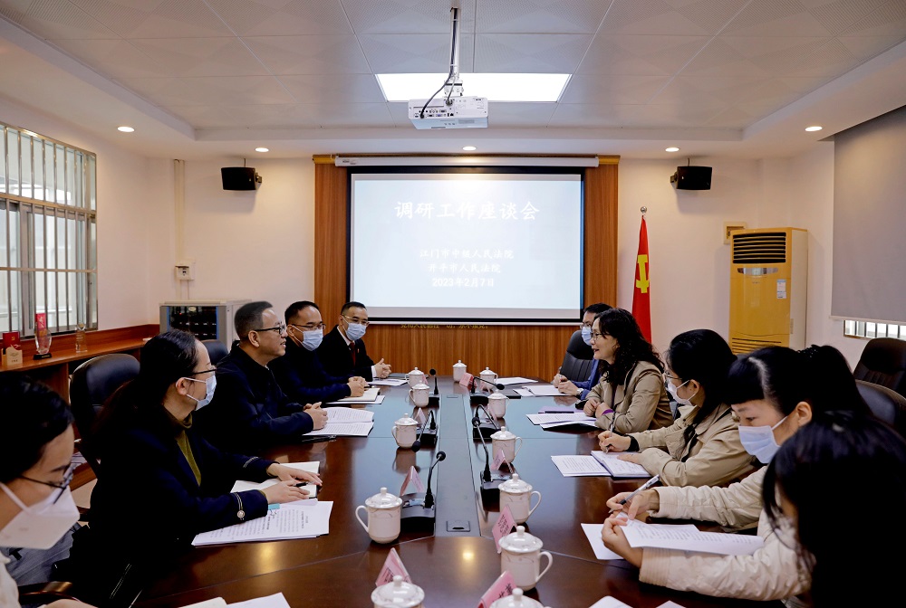 2月7日,江门中院党组成员、副院长陈文军带队到我院赤坎人民法庭实地走访,专题调研古镇特色法庭建设、涉侨诉讼服务、司法护航文旅产业等工作。我院党组书记、院长吴拥军陪同调研。