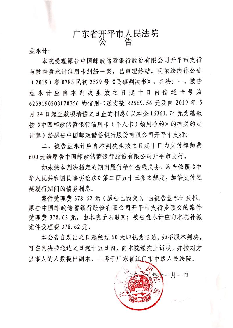来源: 开平市人民法院 发布日期 : 2019-11-12