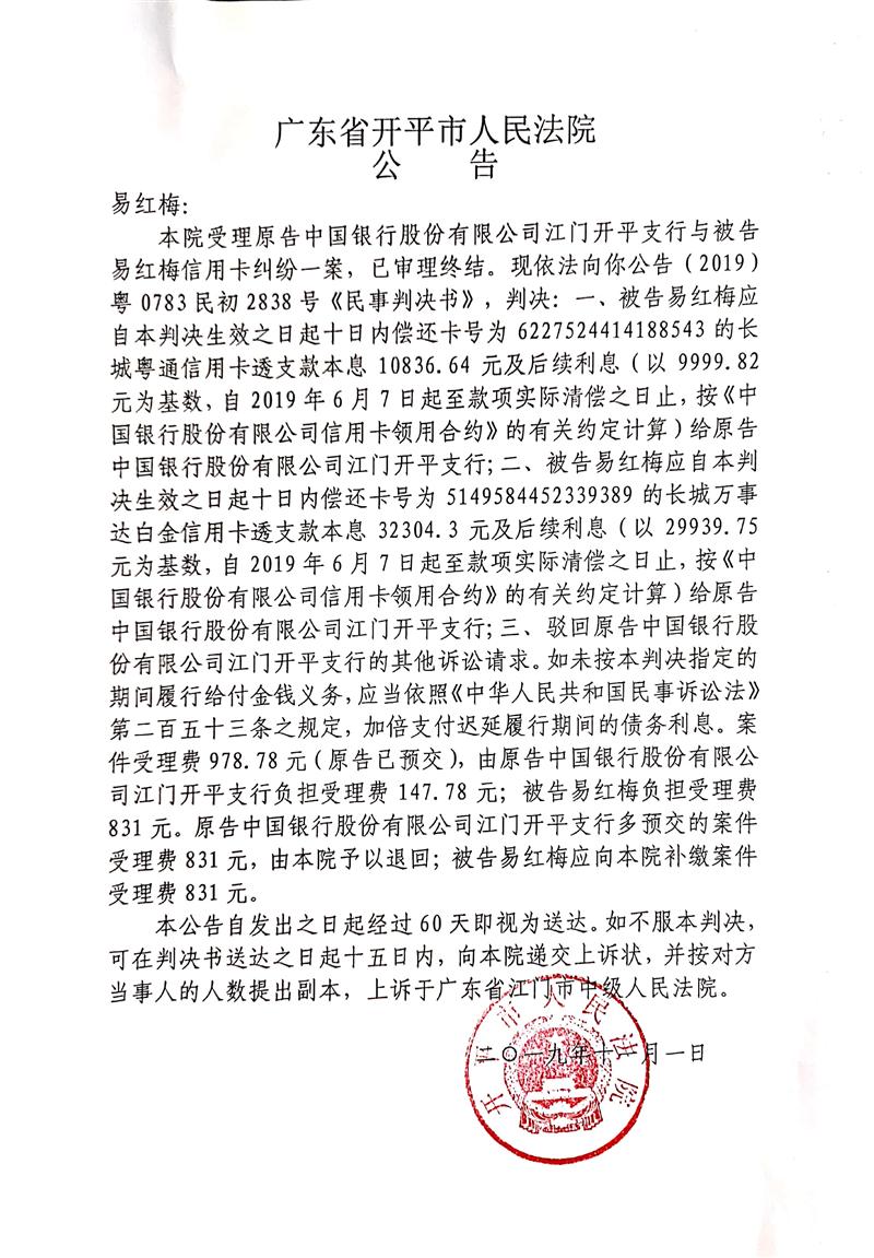 来源: 开平市人民法院 发布日期 : 2019-11-12