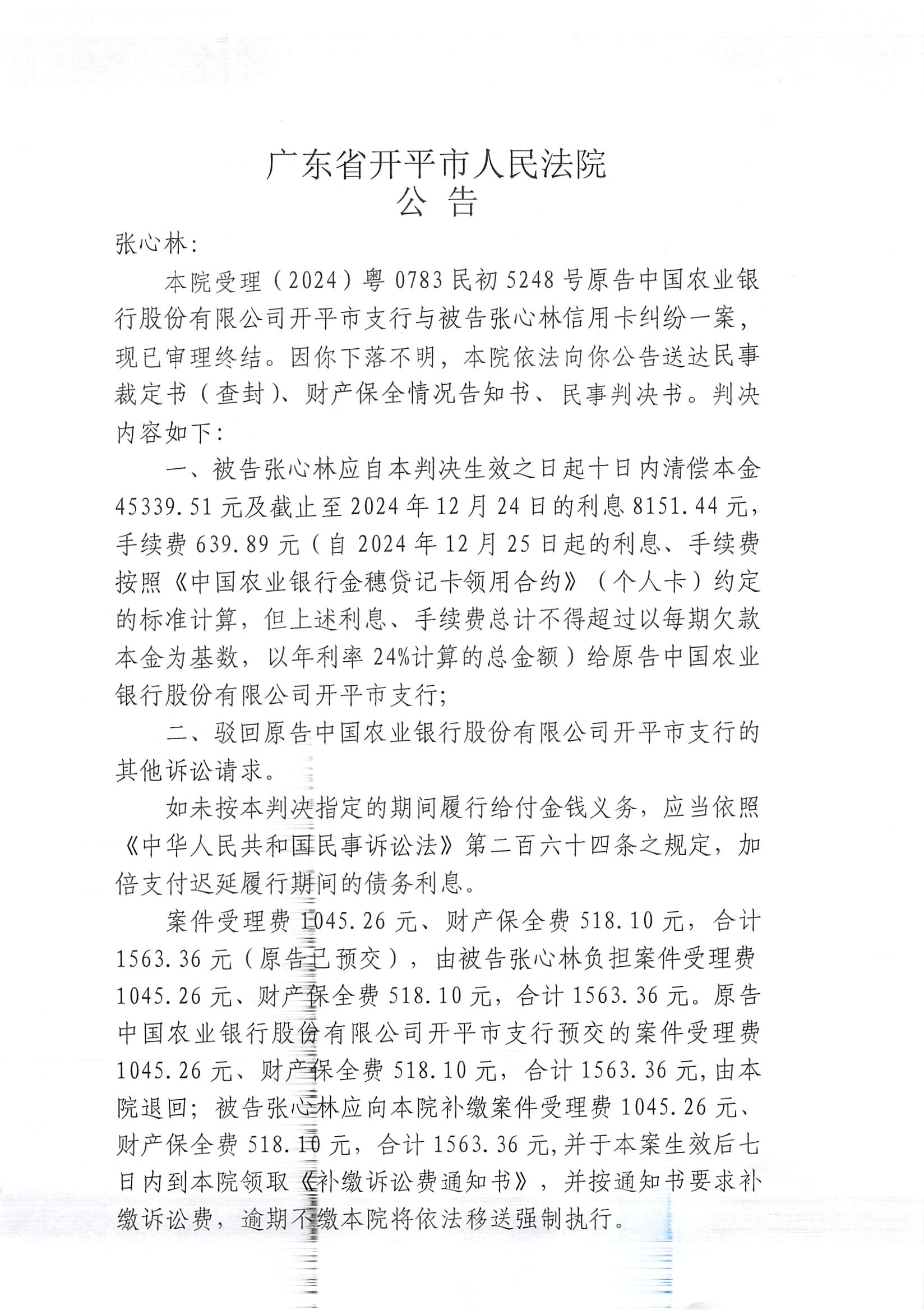 附件:(2024)粤0783民初5248号 张心林 判决公告.pdf