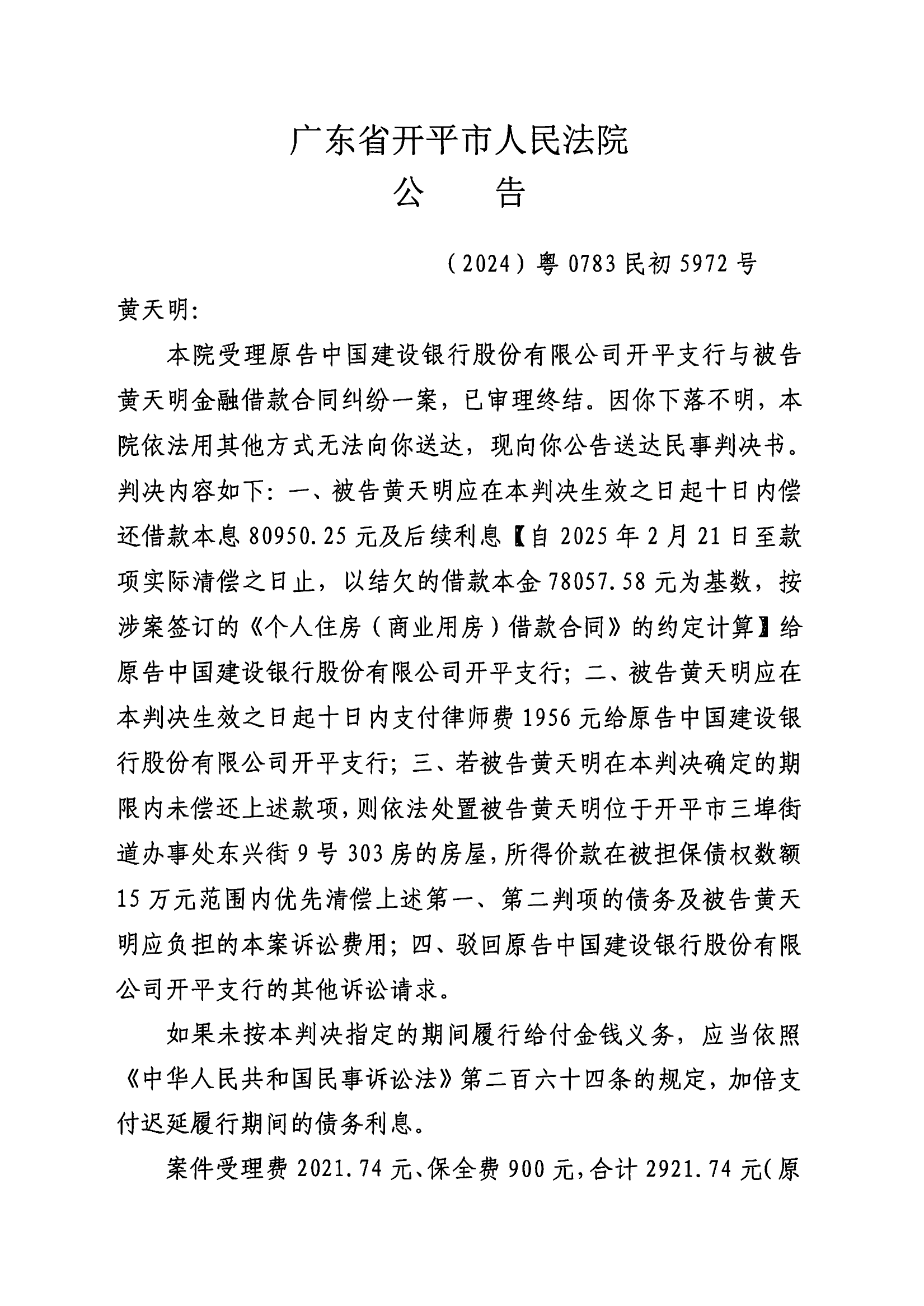 附件:(2024)粤0783民初5972号 黄天明 判决公告.pdf