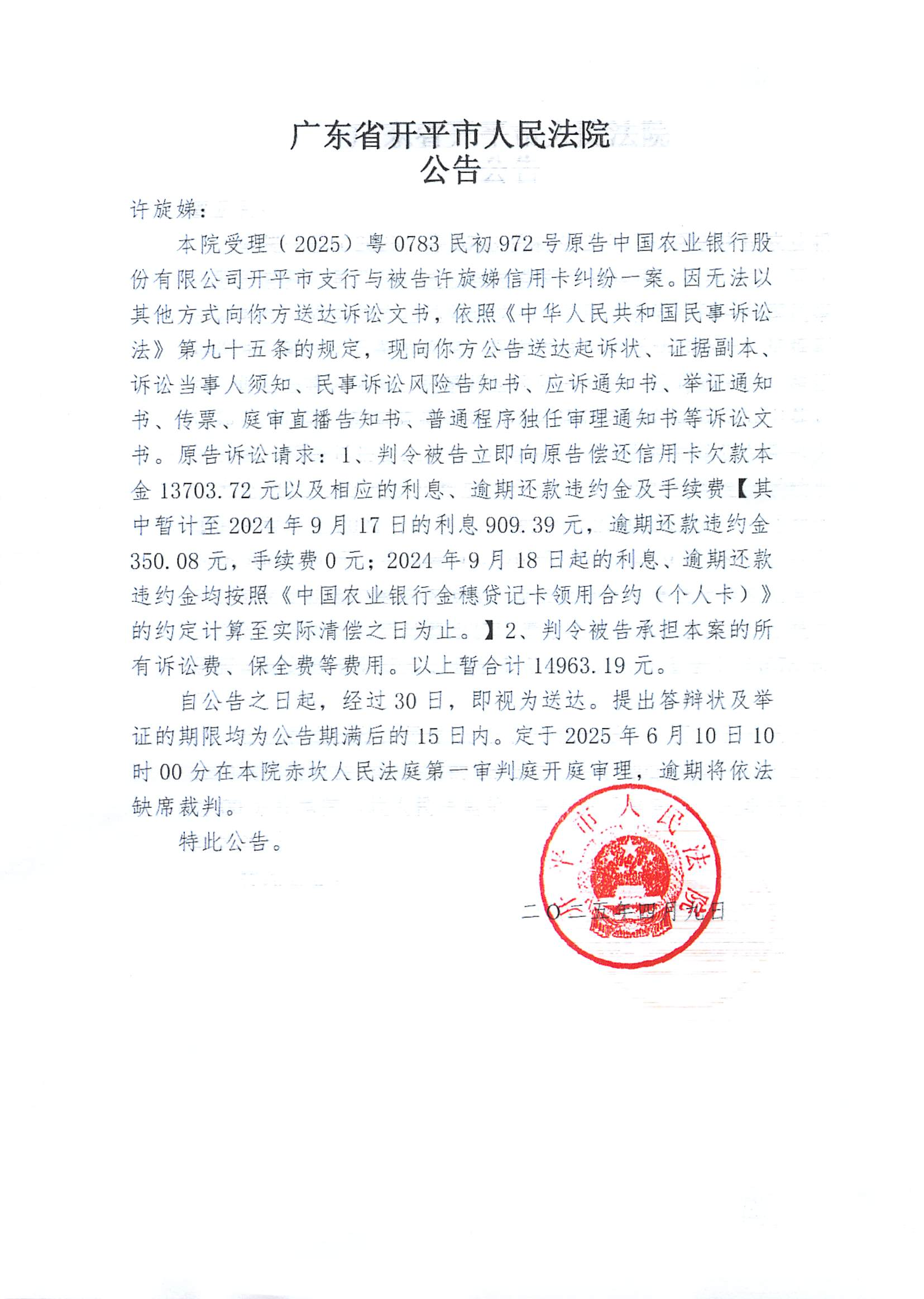 附件:(2025)粤0783民初972号 许旋娣 开庭公告.pdf