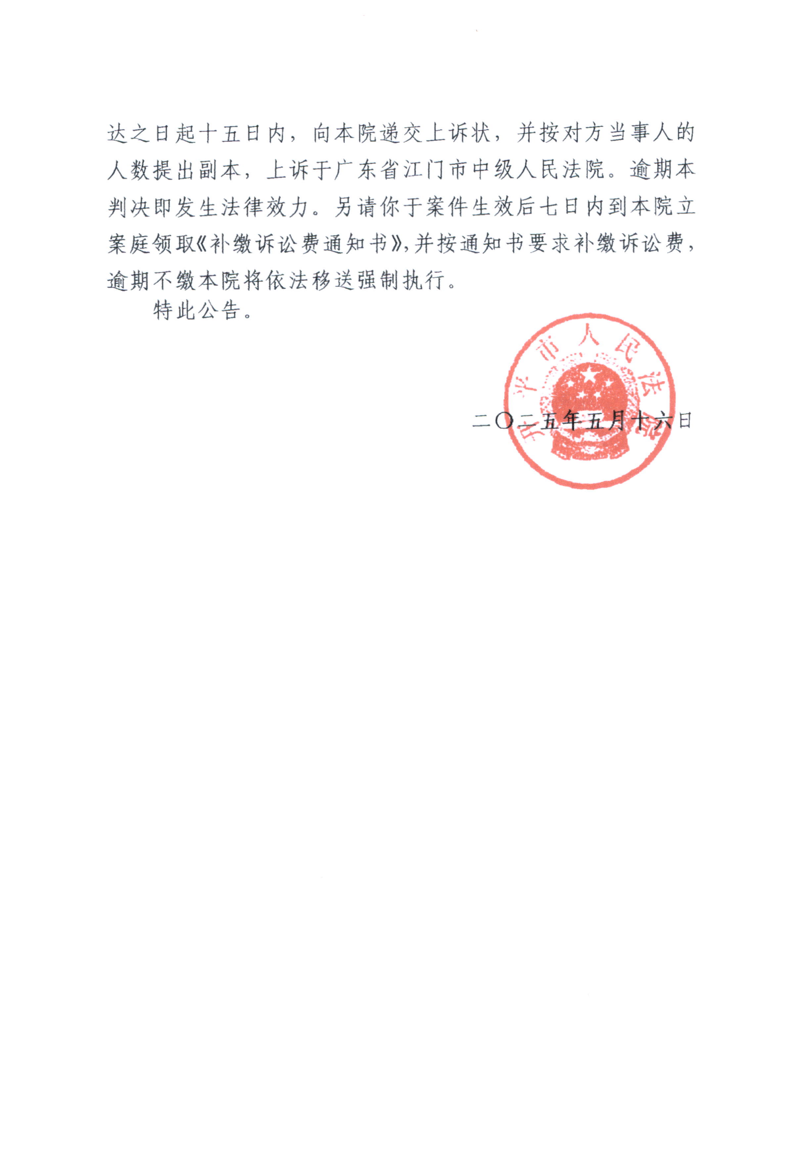 附件:(2024)粤0783民初5492号 陈有荣 判决公告.pdf