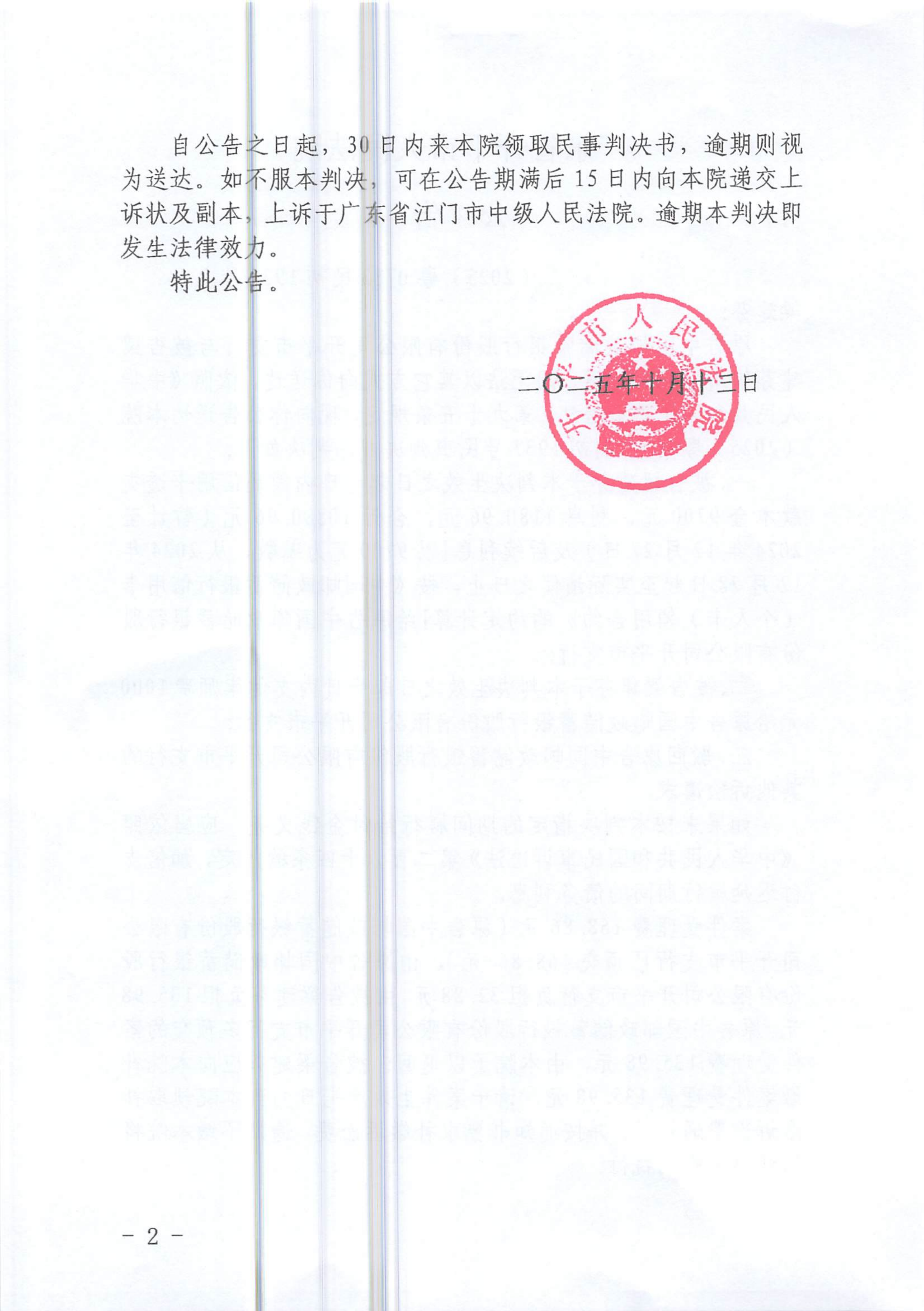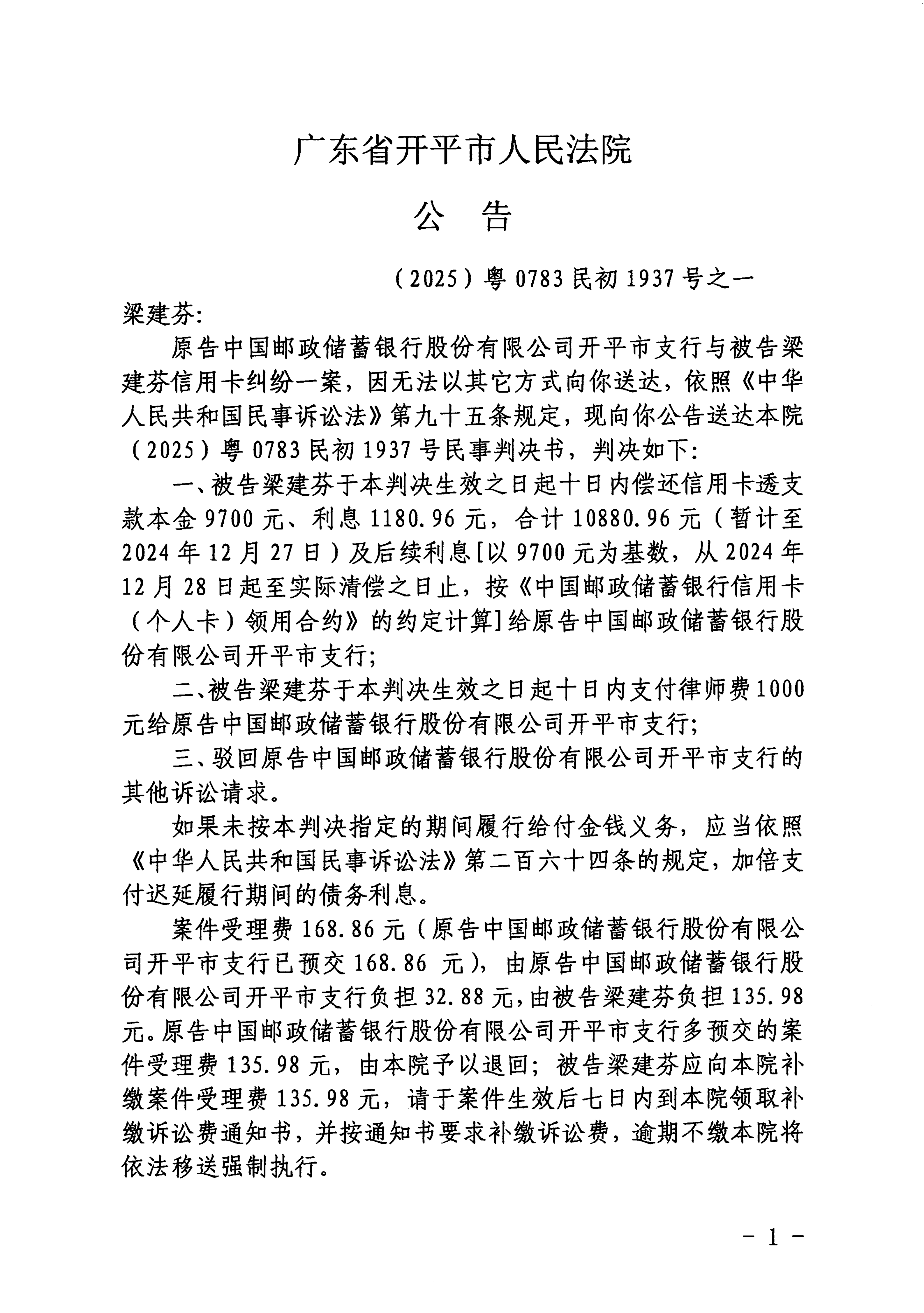 附件:(2025)粤0783民初1937号之一 梁建芬 判决公告.pdf
