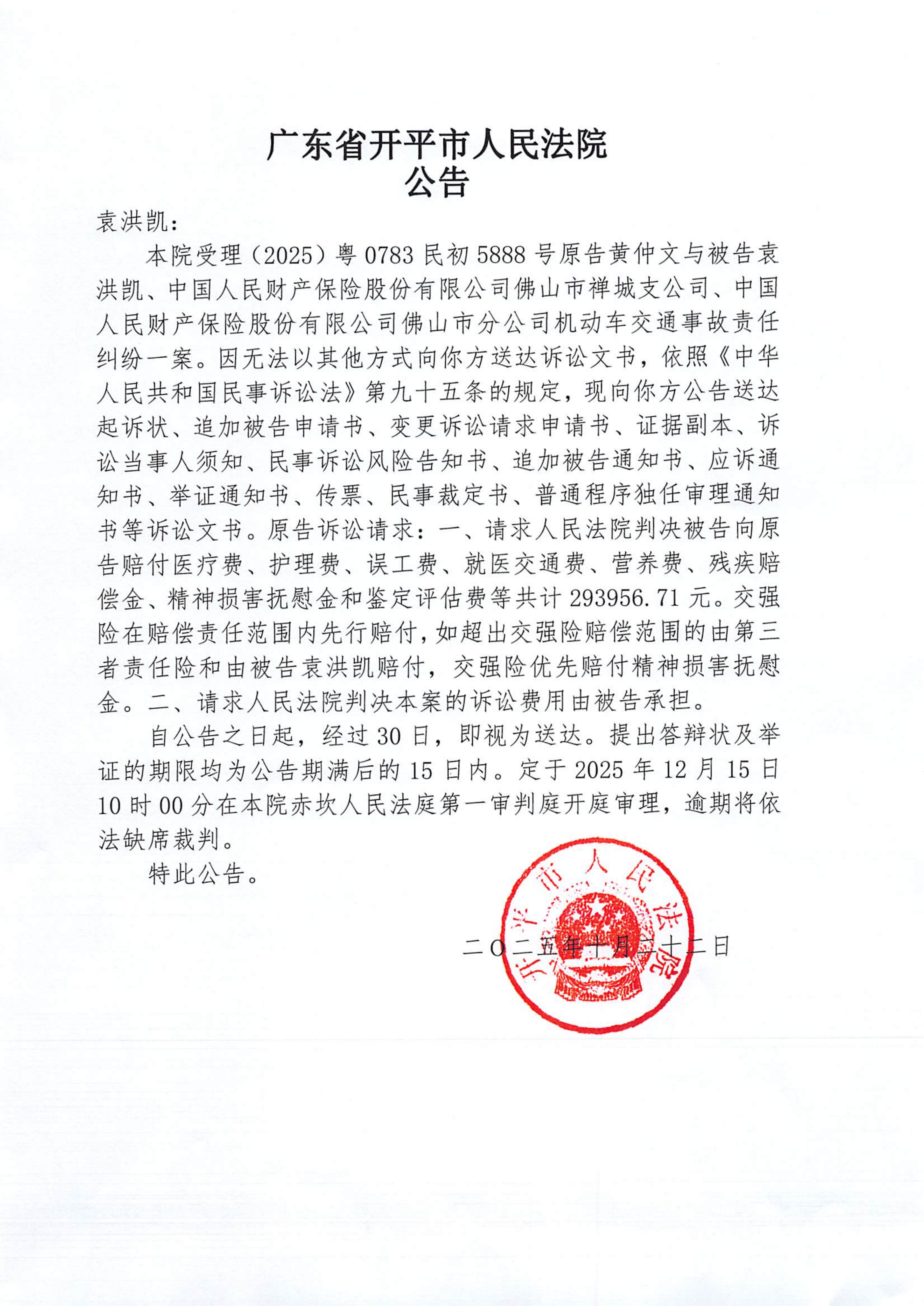 附件:(2025)粤0783民初5888号 袁洪凯 开庭公告.pdf