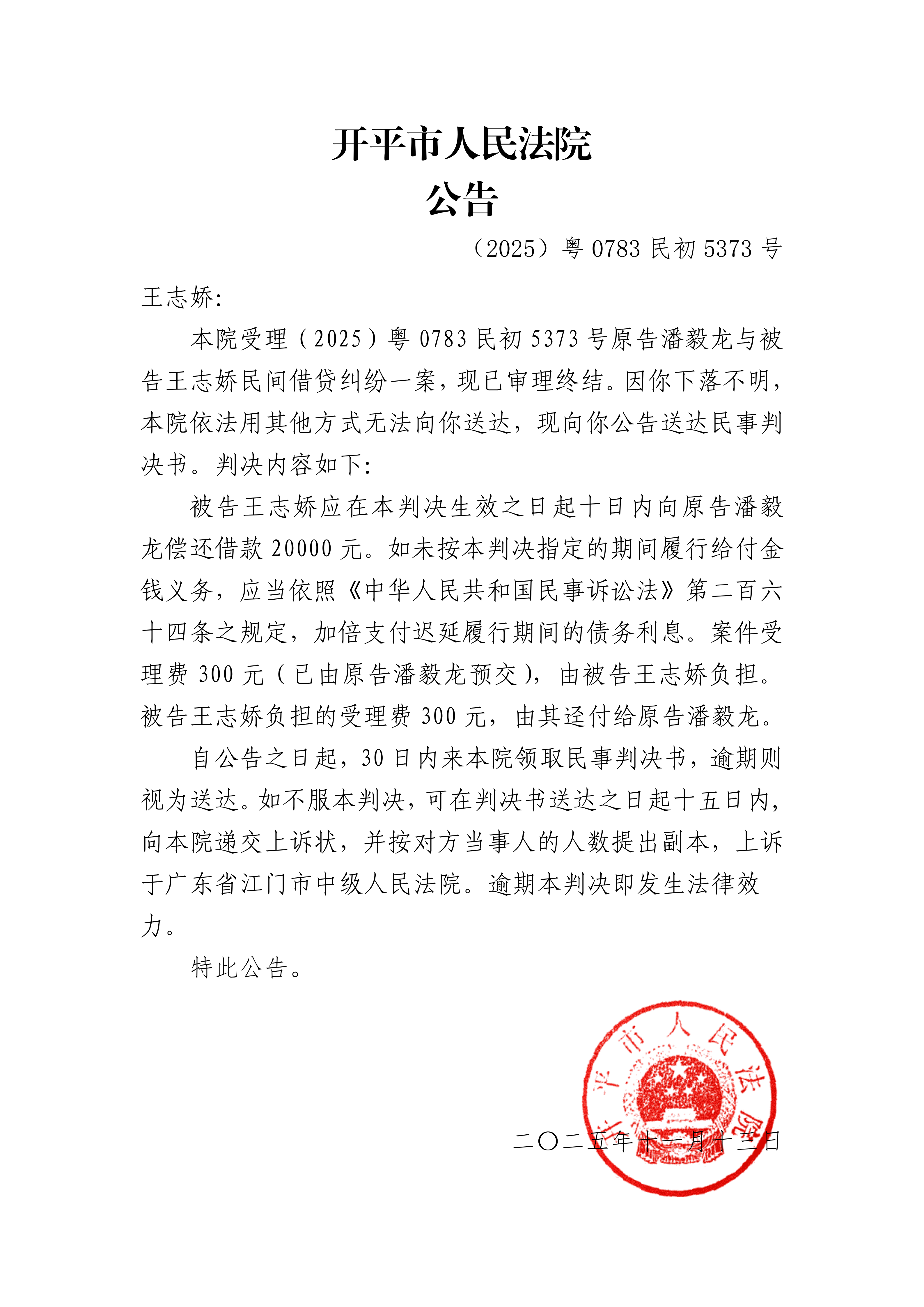 附件:(2025)粤0783民初5373号 王志娇 判决公告.pdf