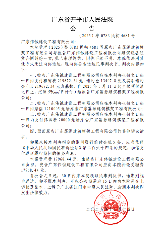 粤ICP备19069791号-1号 开平市人民法院版权所有