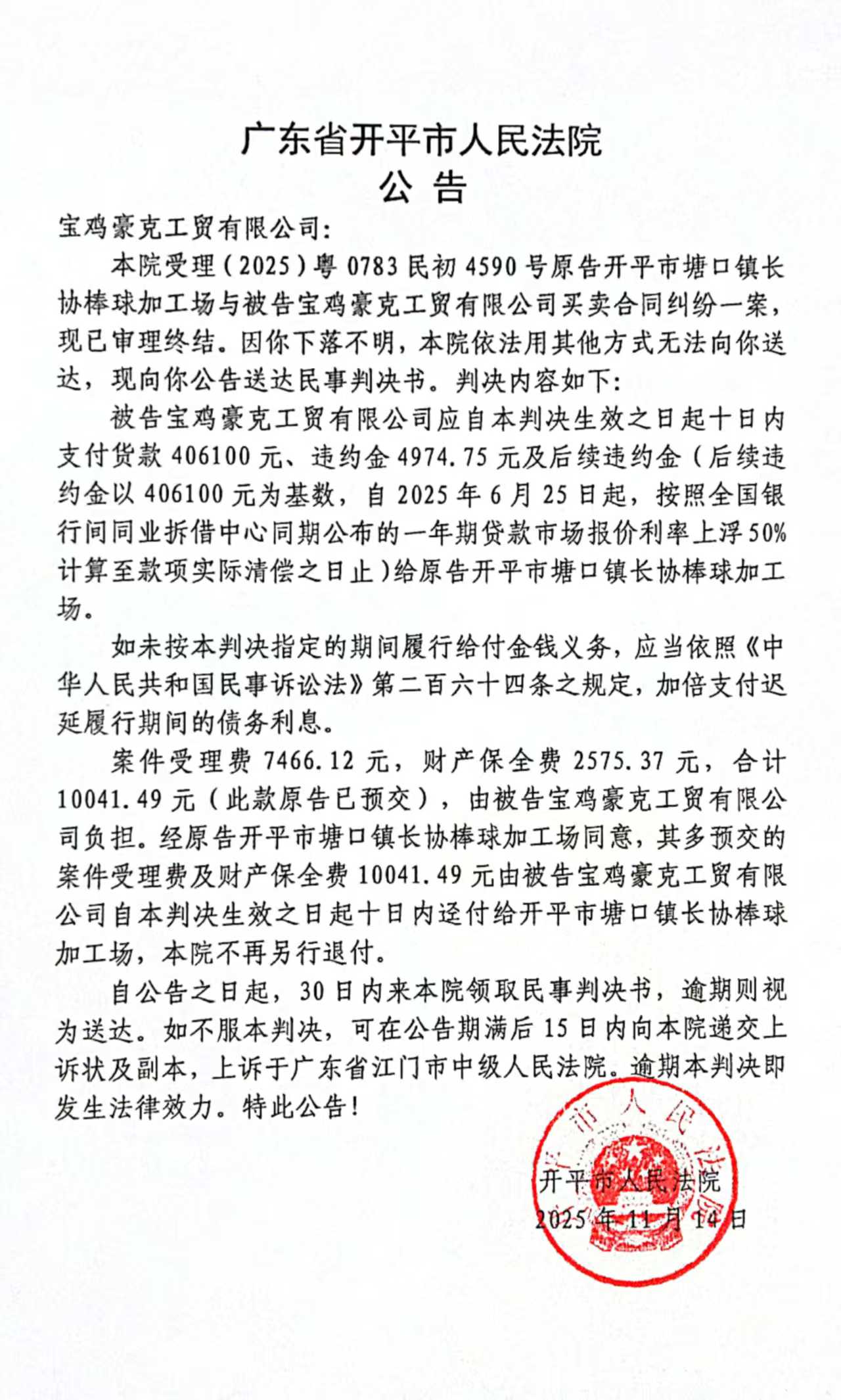 粤ICP备19069791号-1号 开平市人民法院版权所有