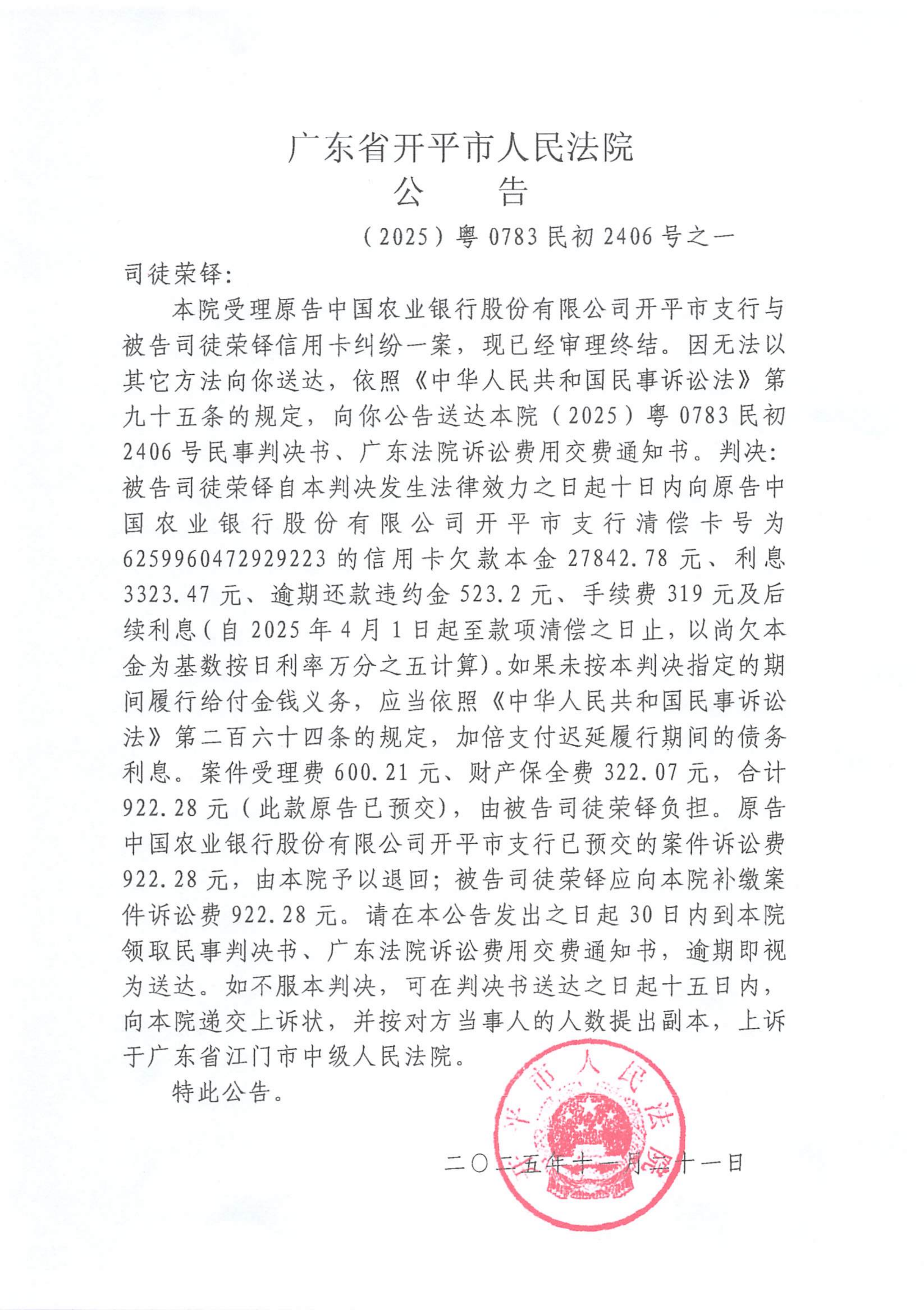 附件:(2025)粤0783民初2406号之一 司徒荣铎 判决公告.pdf