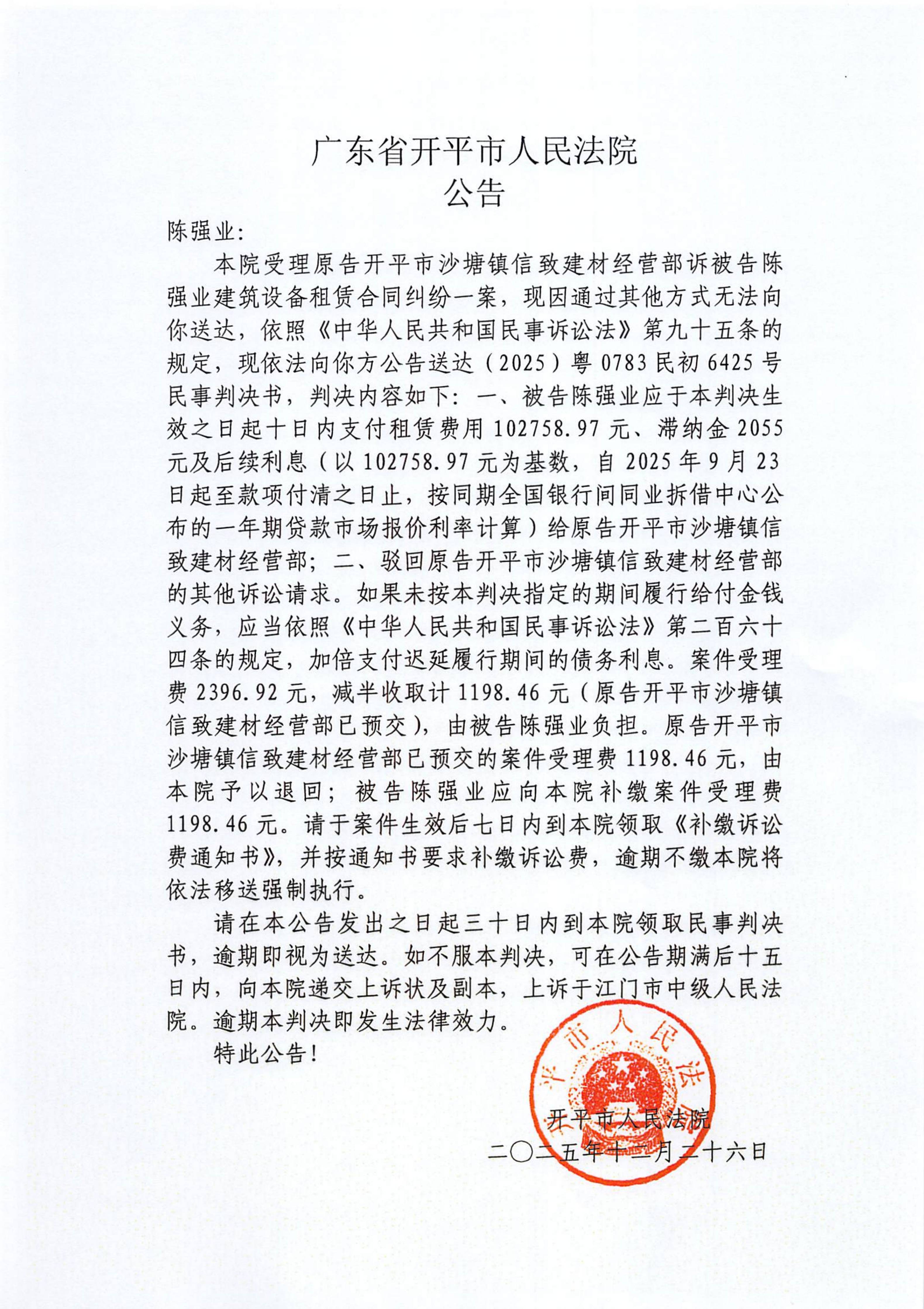 附件:(2025)粤0783民初6425号 陈强业 判决公告.pdf