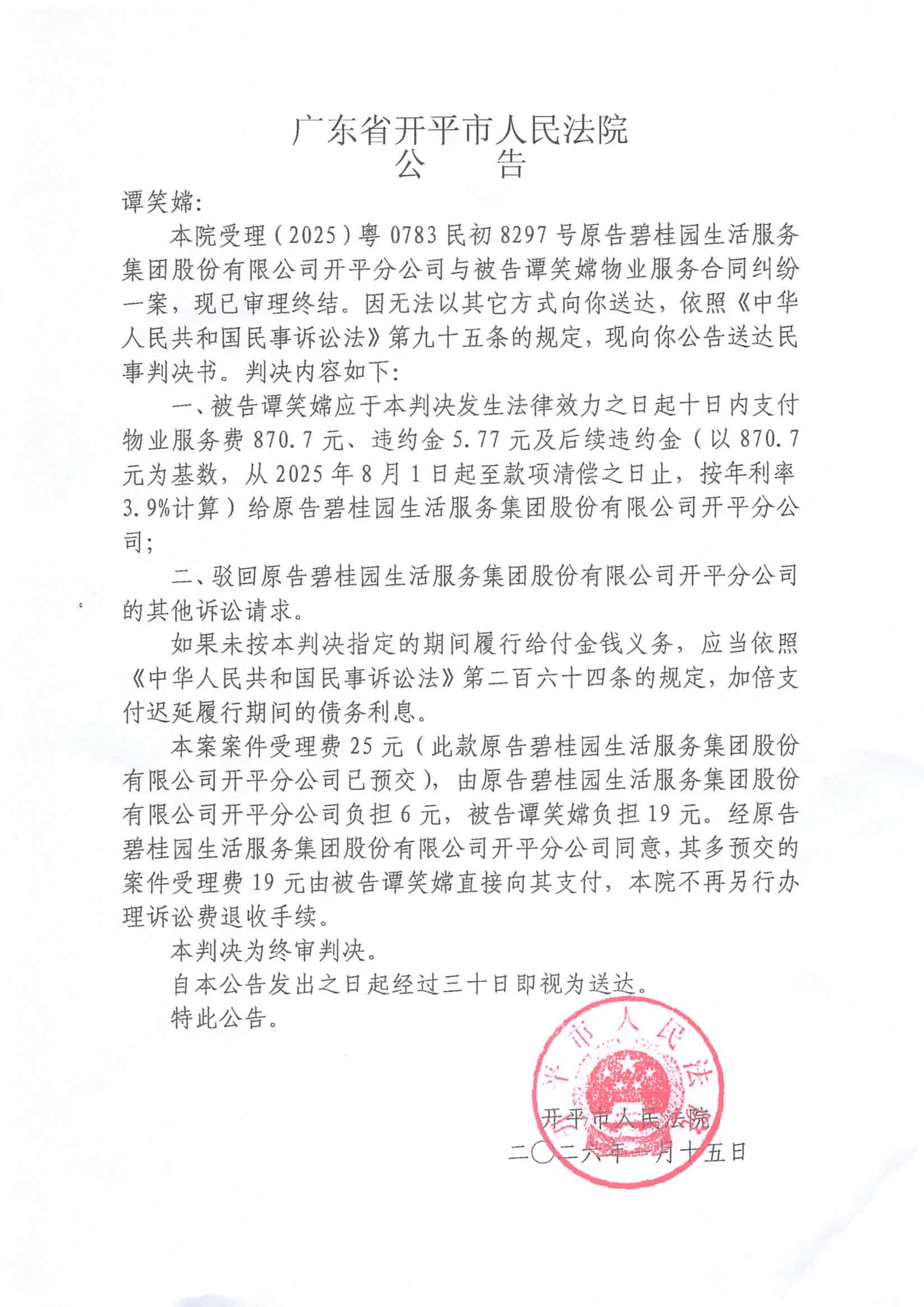 附件:(2025)粤0783民初8297号 谭笑嫦 判决公告.pdf