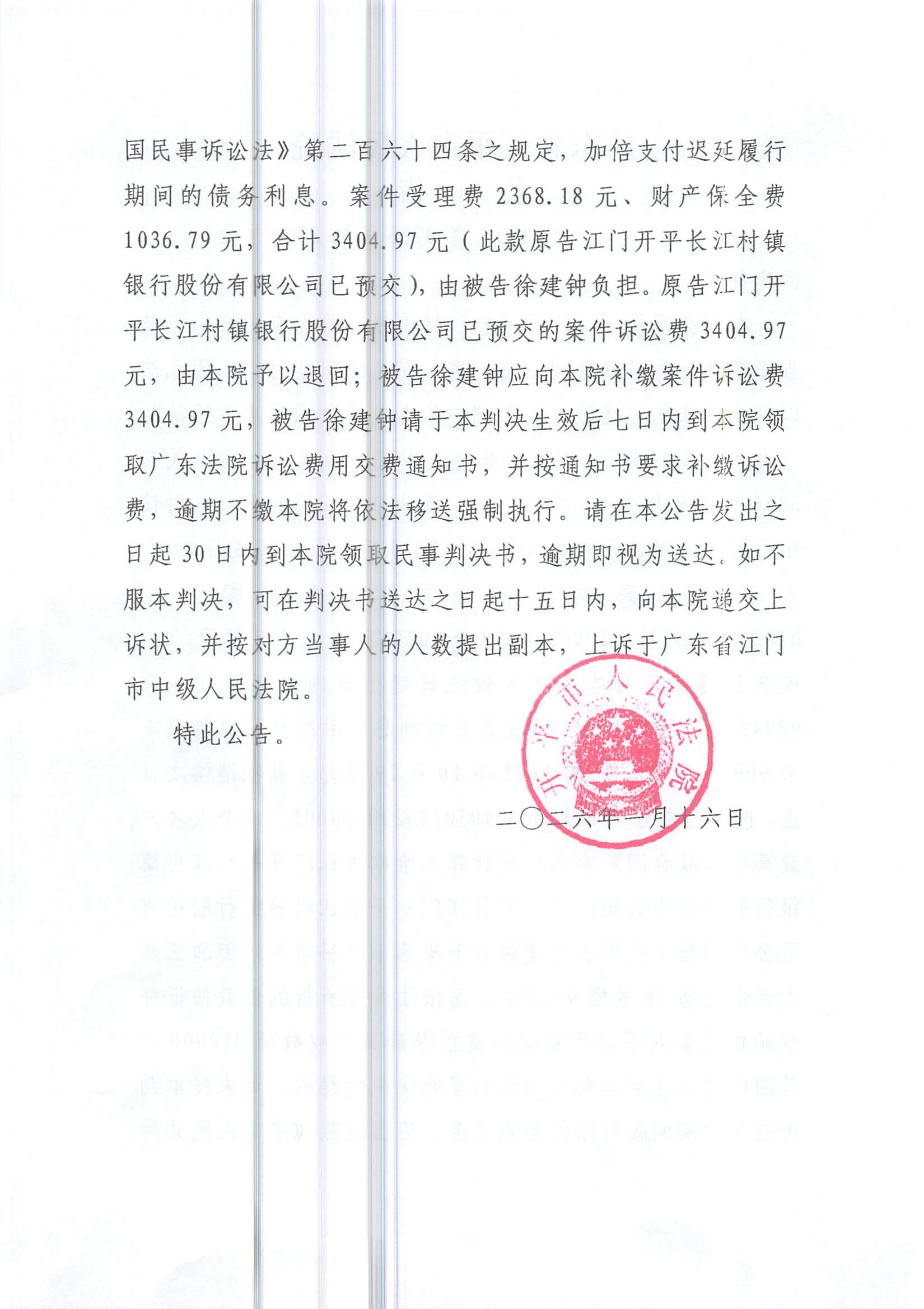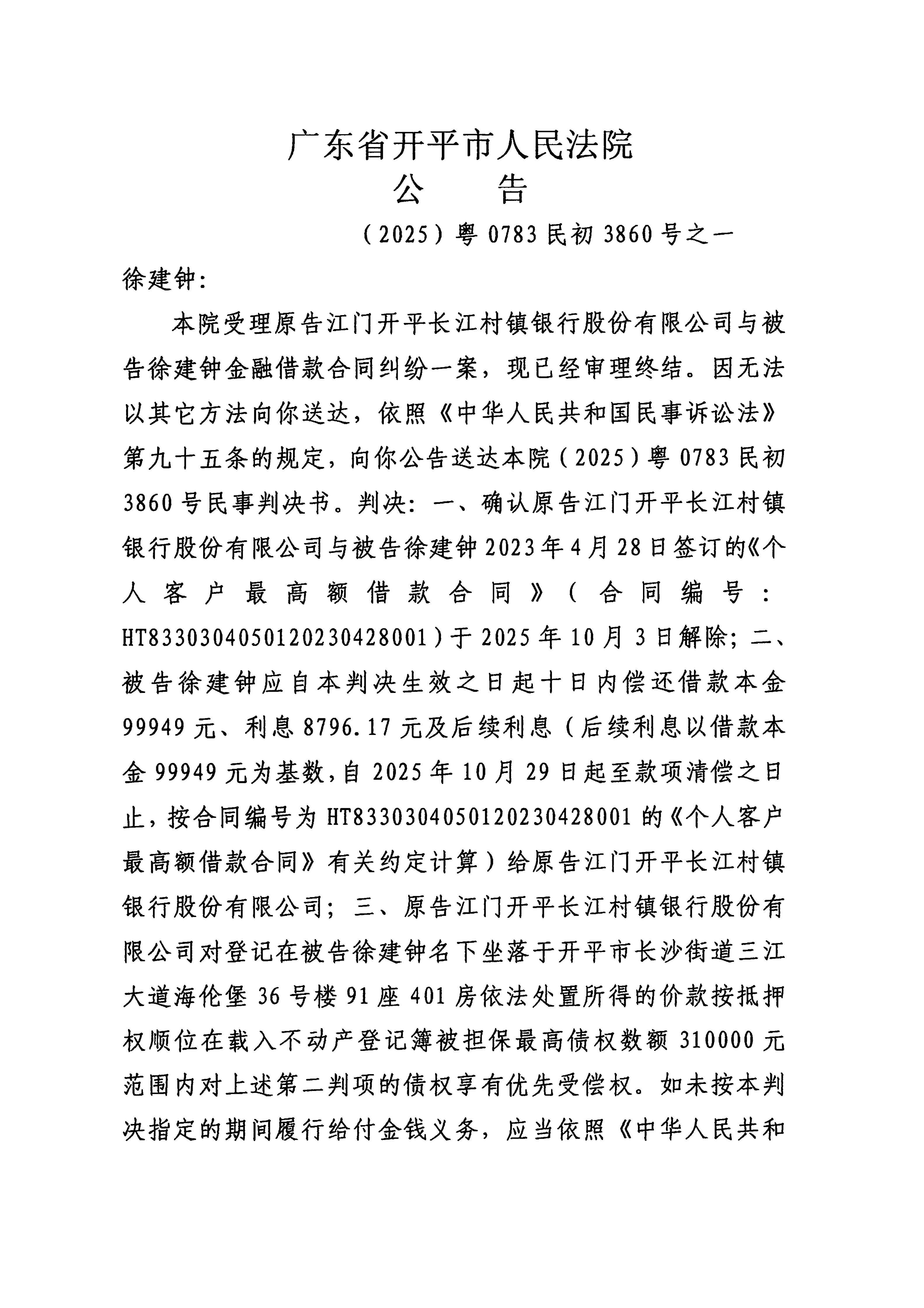 附件:(2025)粤0783民初3860号之一 徐建钟 判决公告.pdf