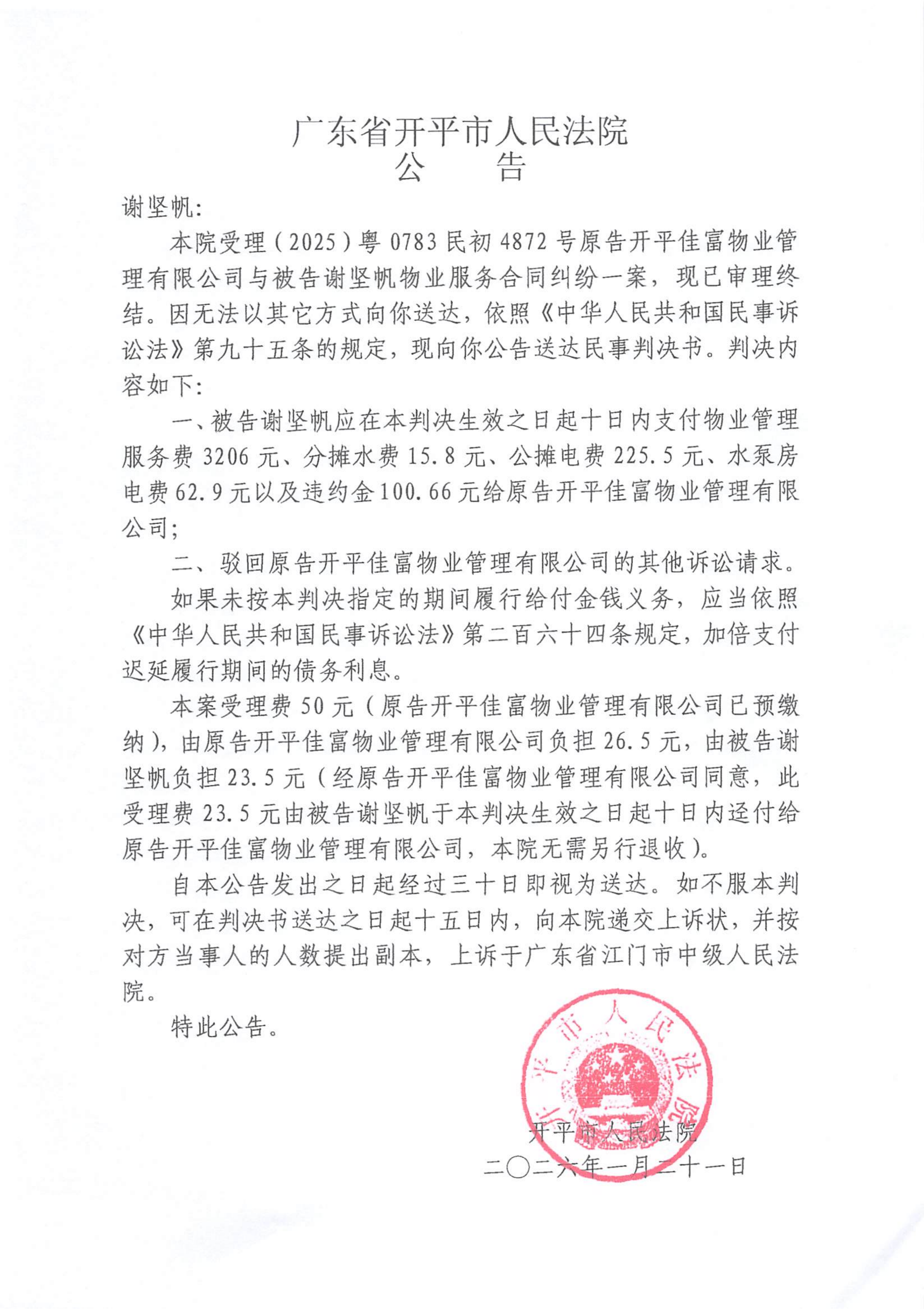 附件:(2025)粤0783民初4872号 谢坚帆 判决公告.pdf