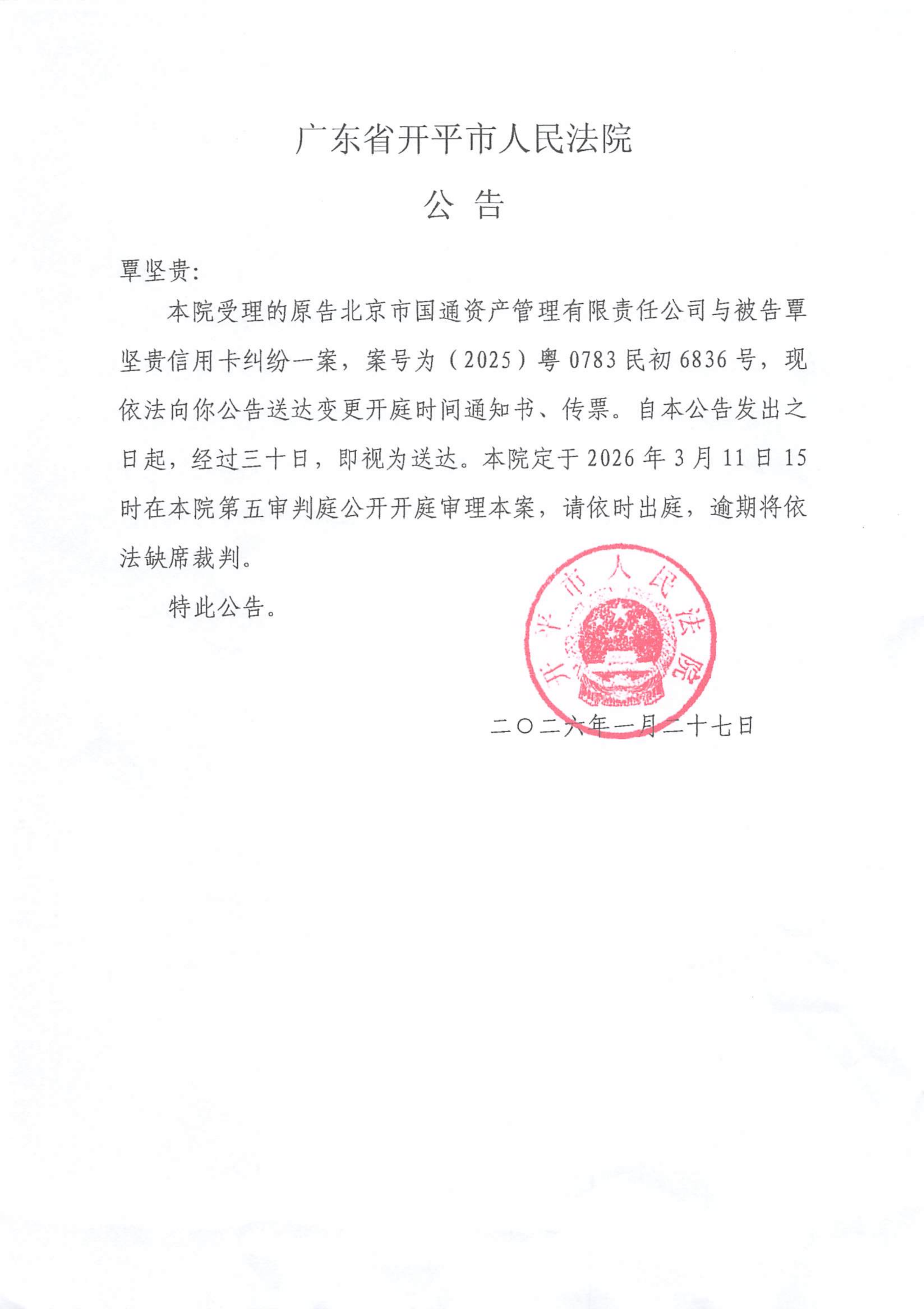 附件:(2025)粤0783民初6836号 覃坚贵 开庭公告.pdf