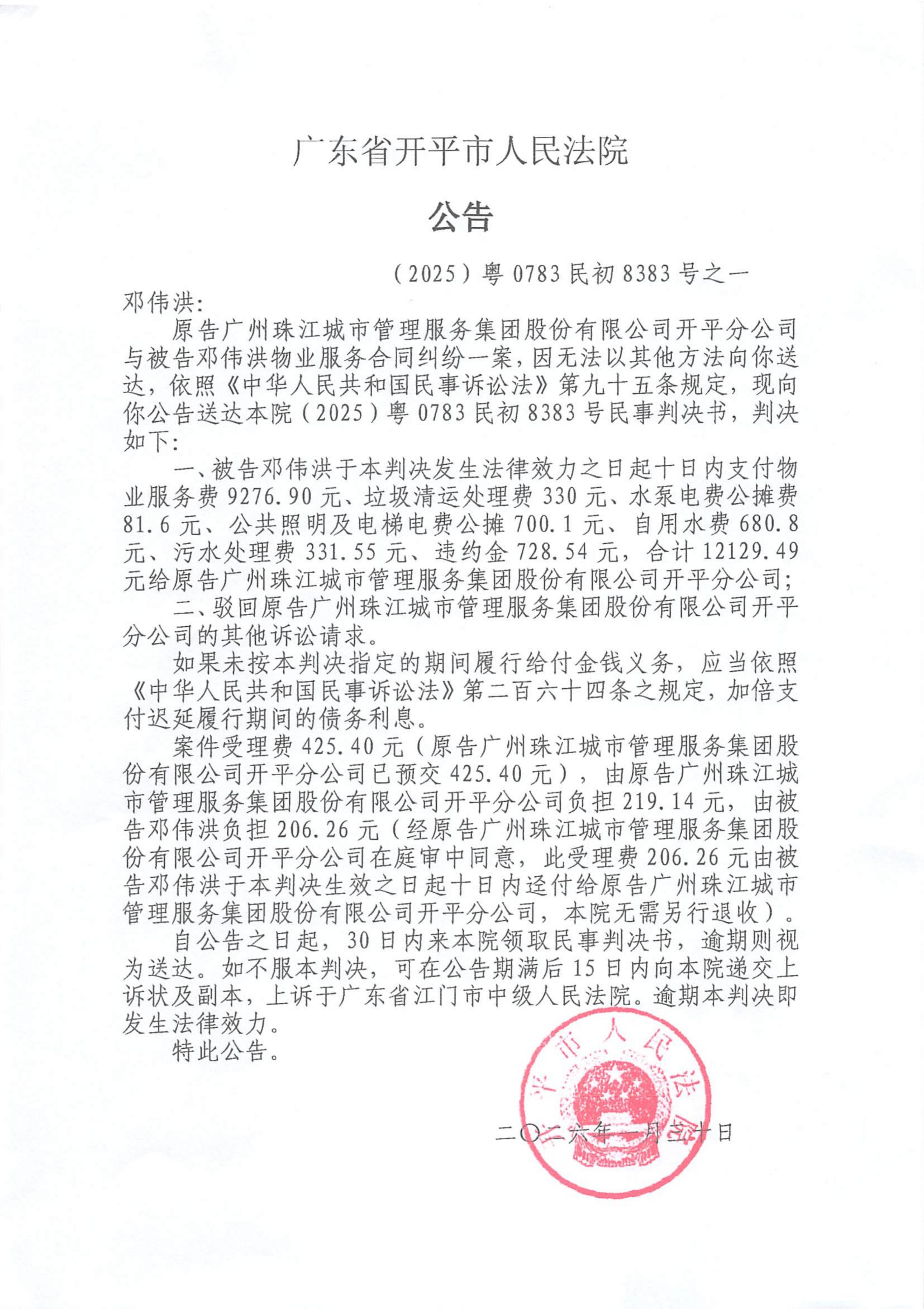 附件:(2025)粤0783民初8383号之一 邓伟洪 判决公告.pdf