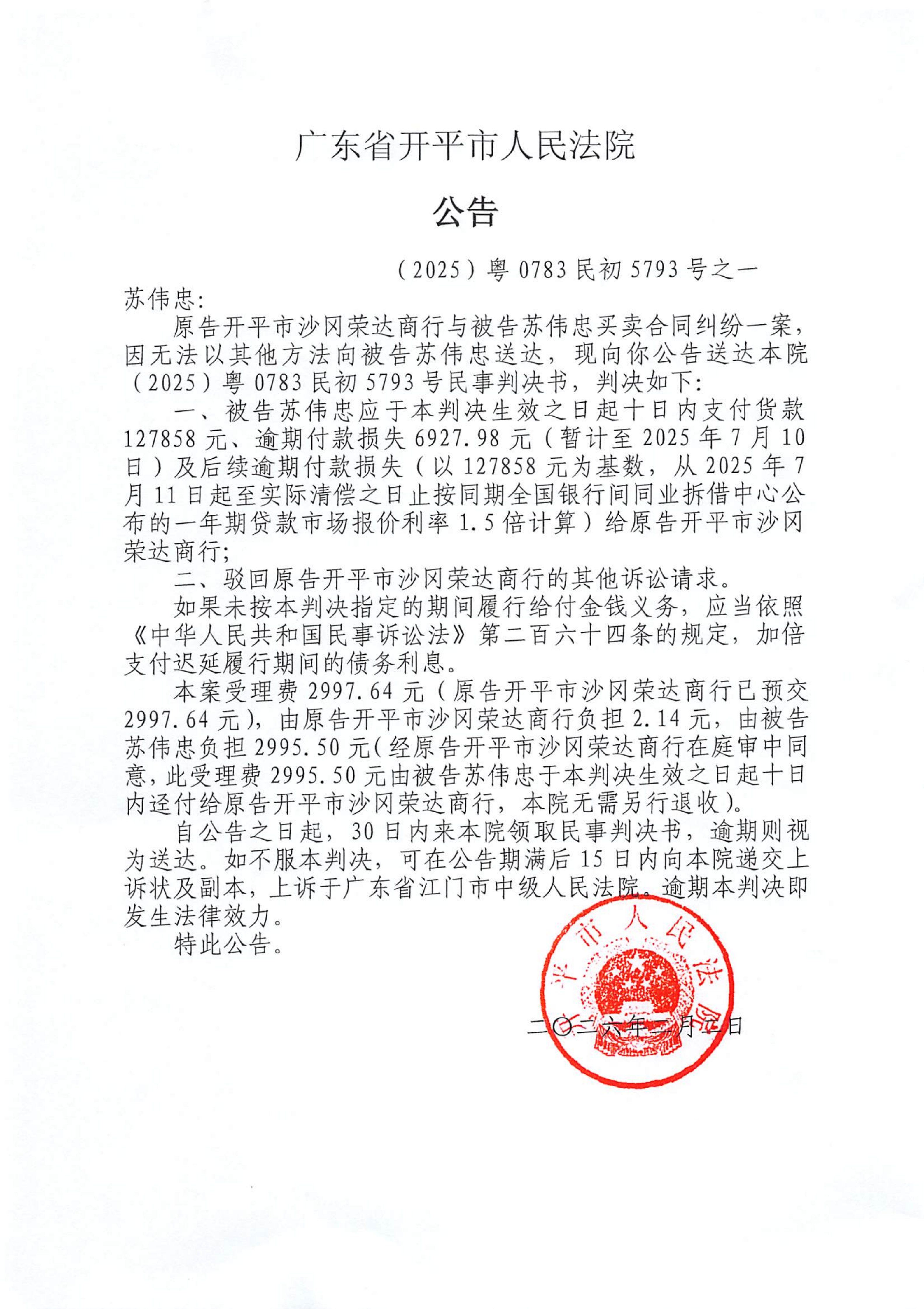 附件:(2025)粤0783民初5793号之一 苏伟忠 判决公告.pdf