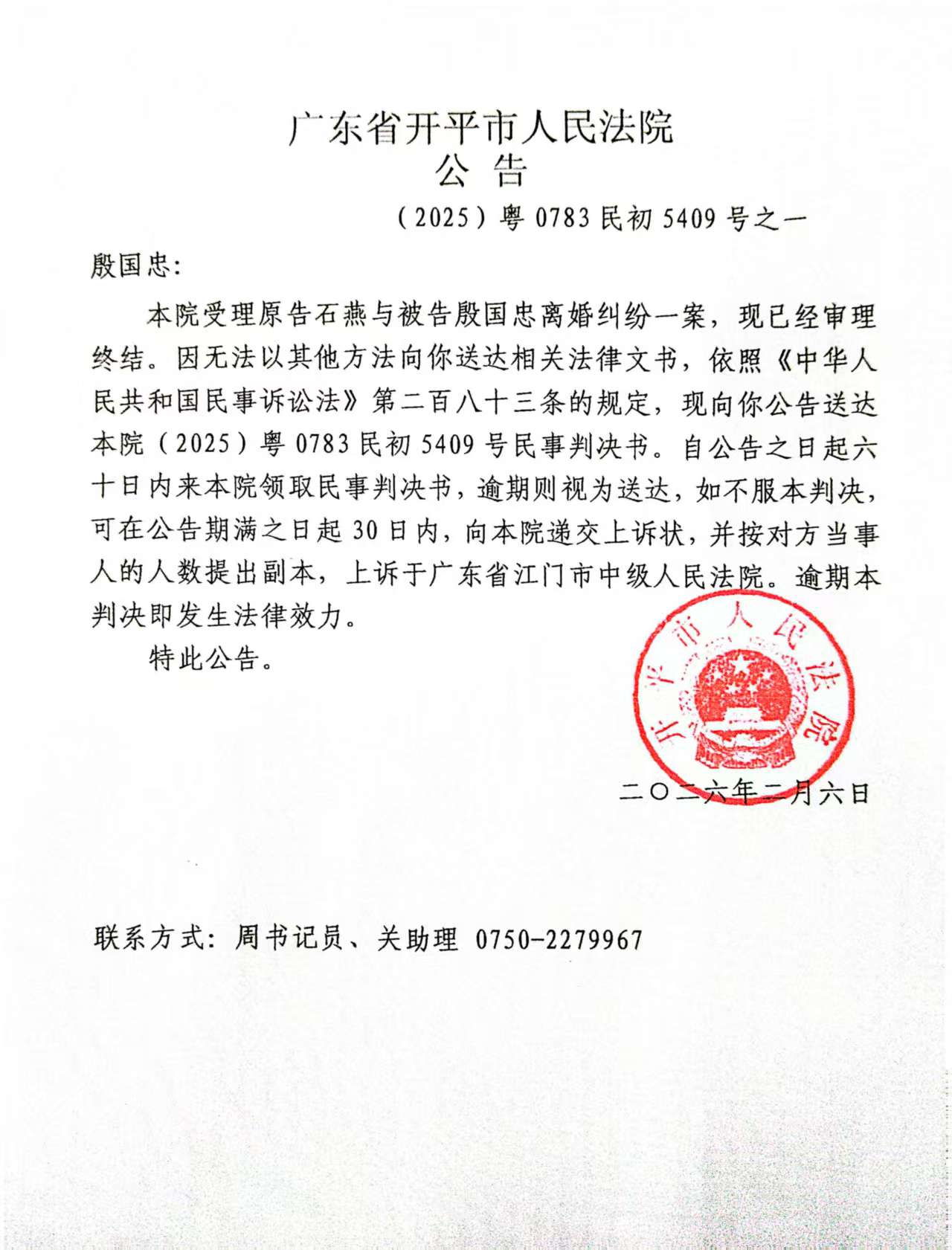 (2025)粤0783民初5409号之一殷国忠判决公告.pdf