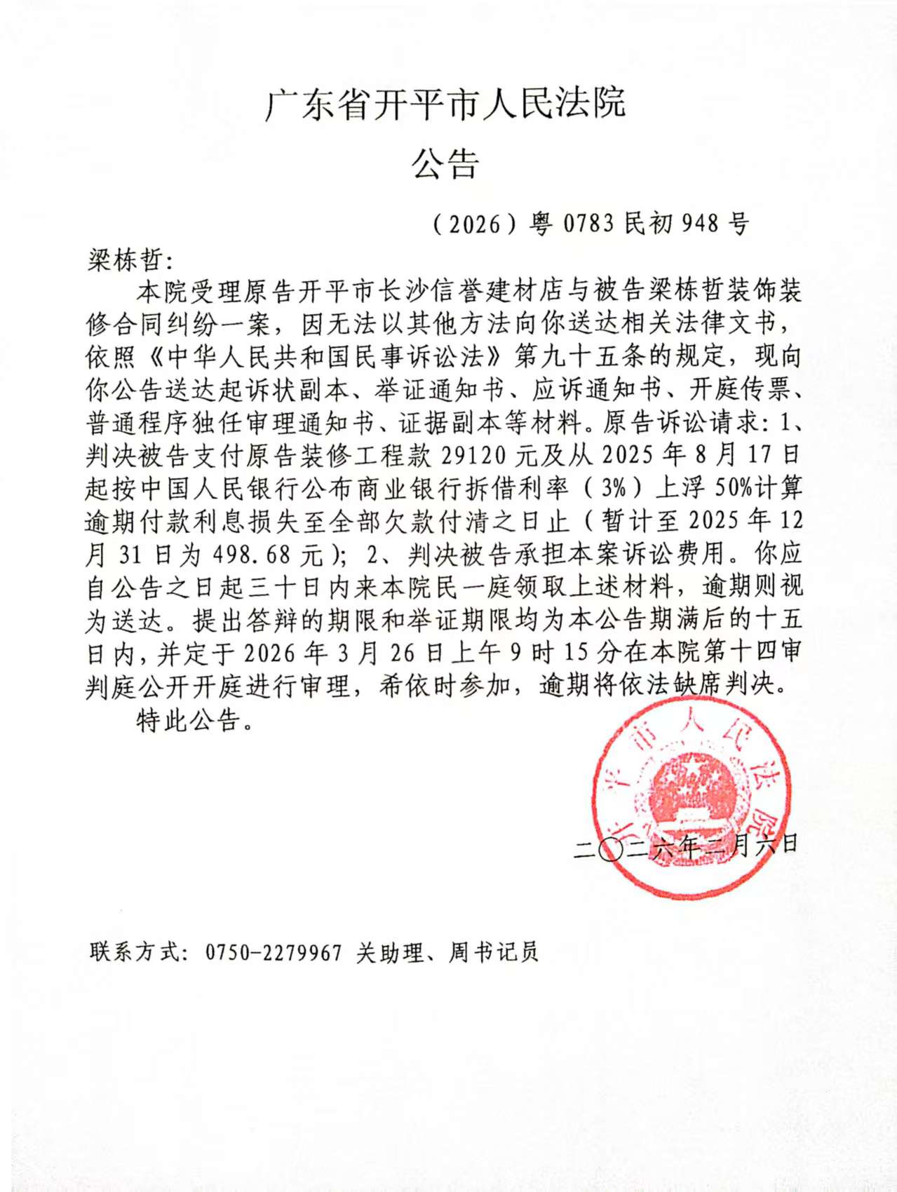 (2026)粤0783民初948号梁栋哲应诉公告.pdf
