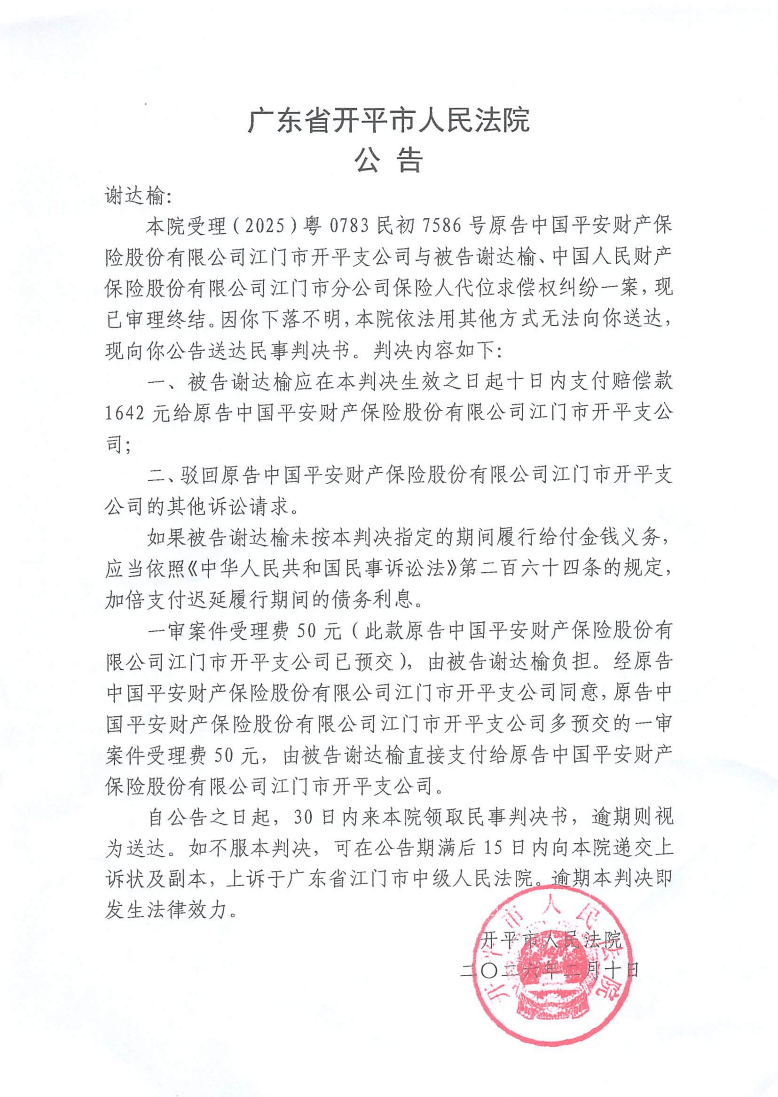 附件:(2025)粤0783民初7586号 谢达榆 判决公告.pdf