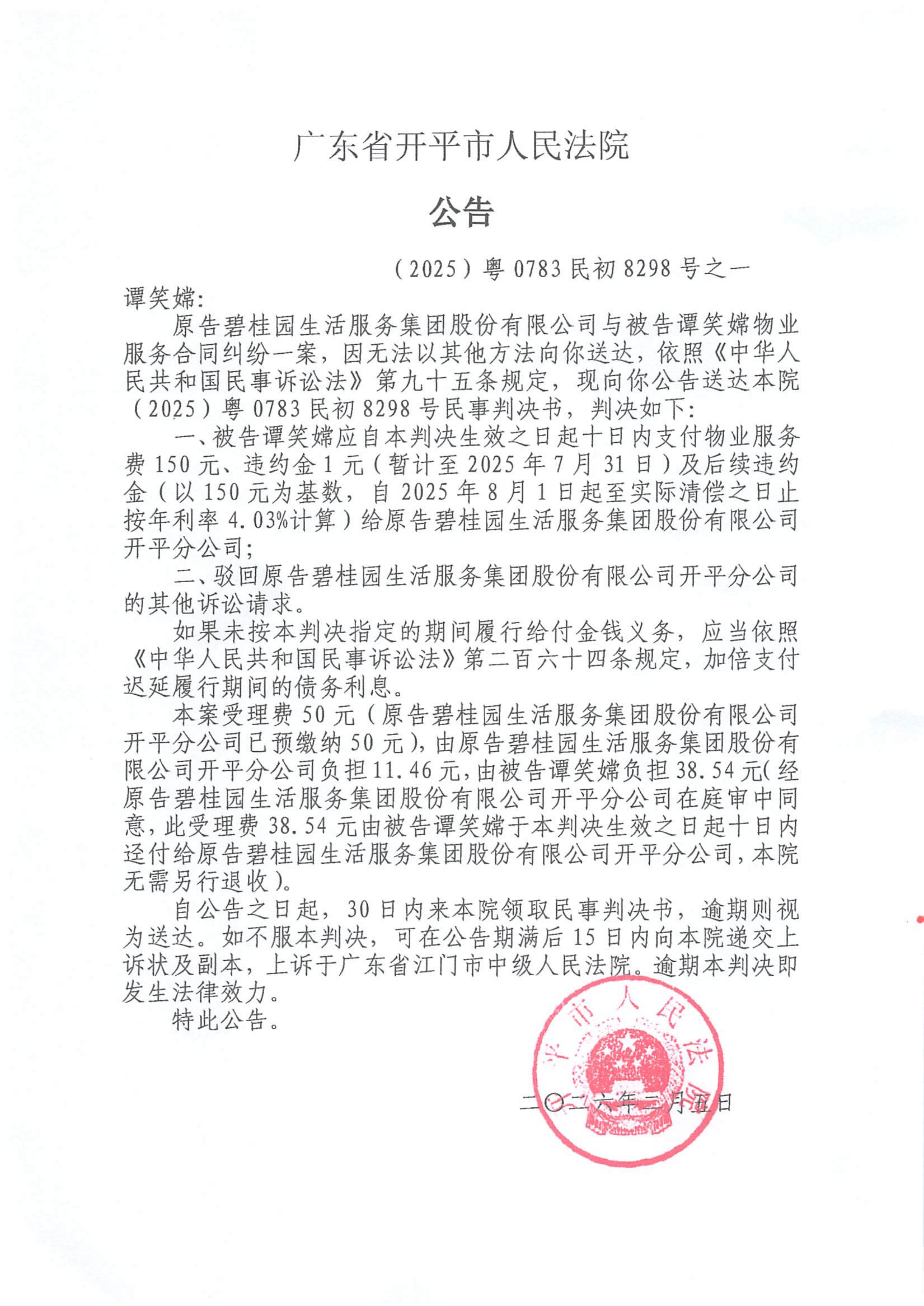 附件:(2025)粤0783民初8298号之一 谭笑嫦 判决公告.pdf