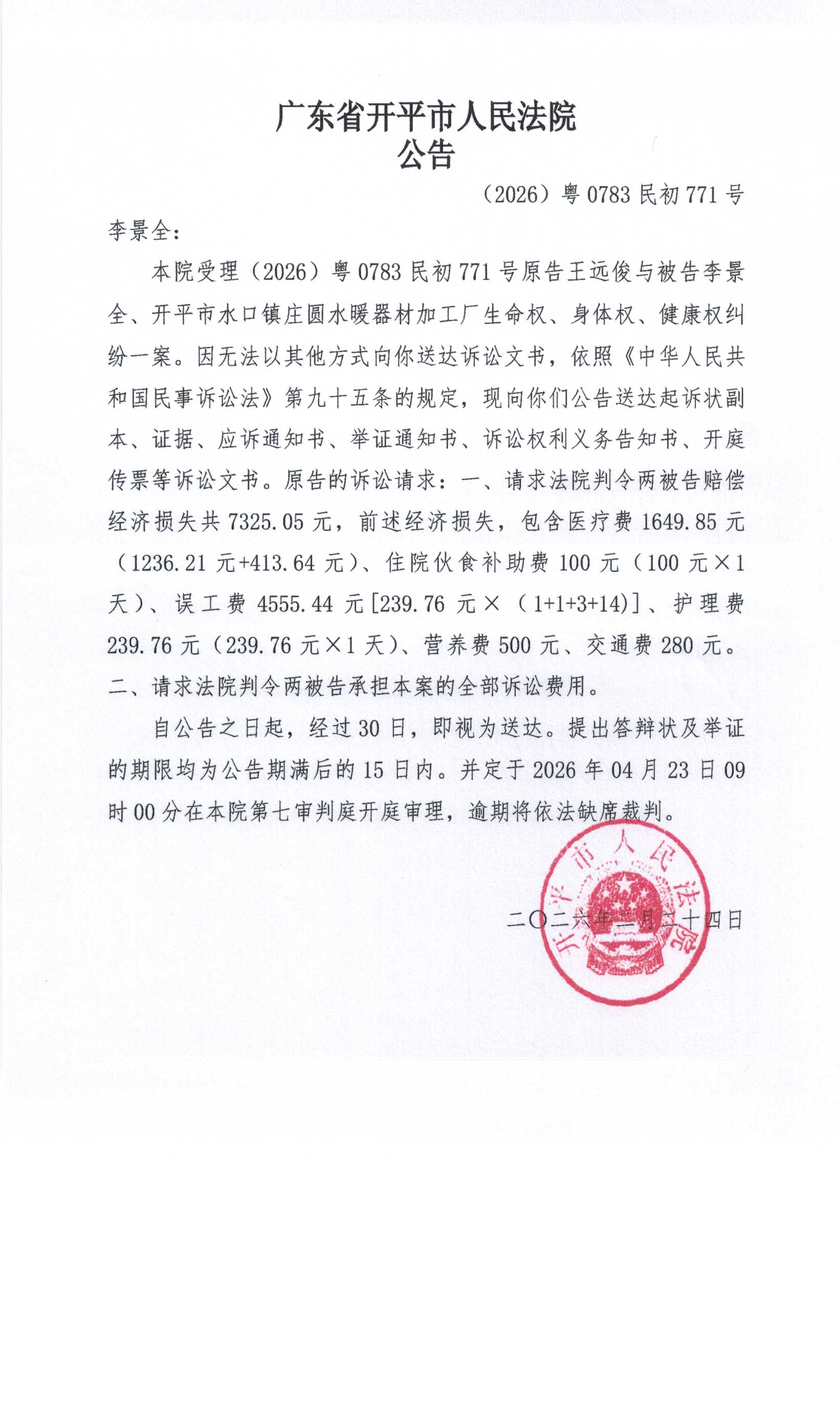 (2026)粤0783民初771号 李景全 开庭公告.pdf