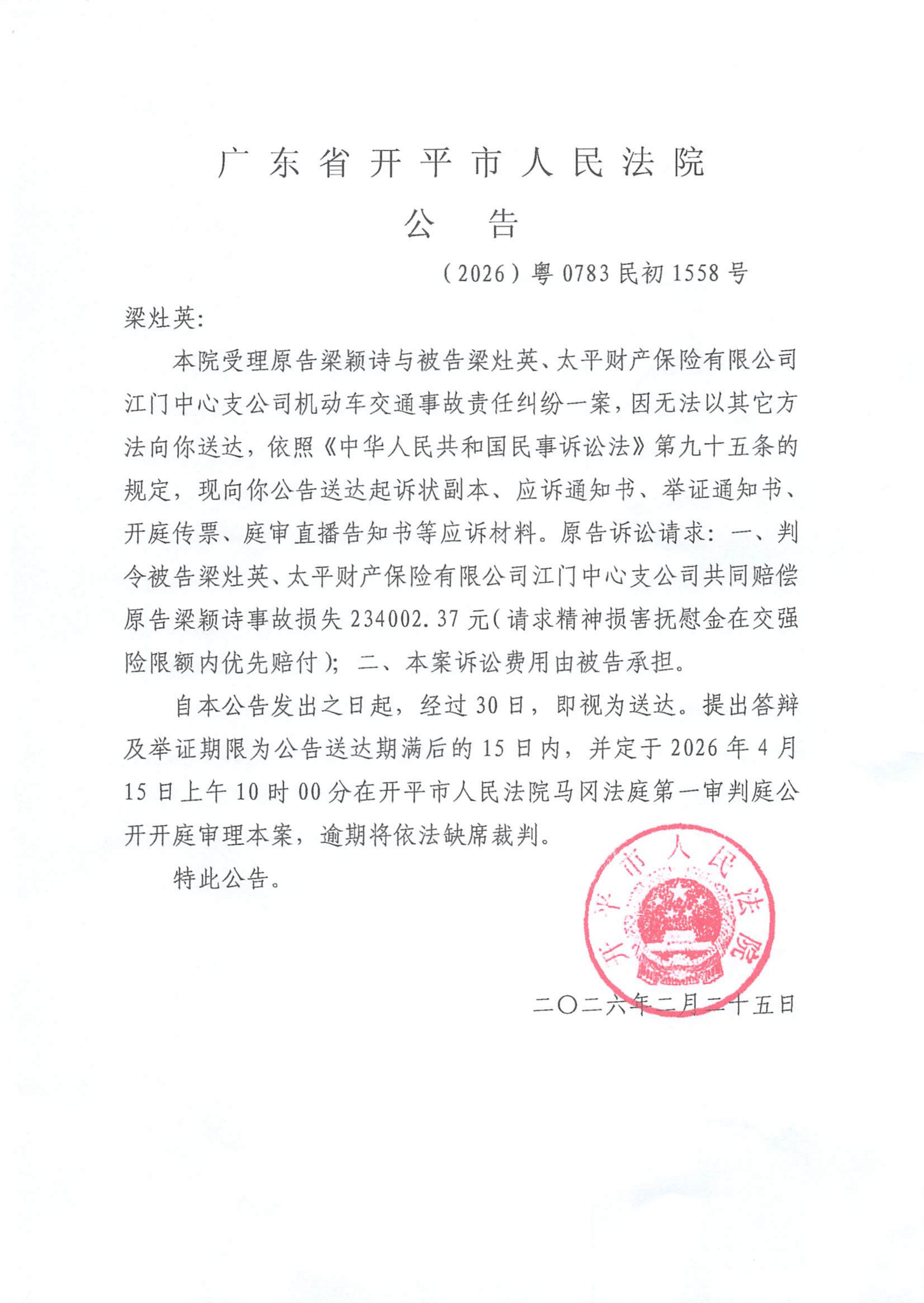 附件:(2026)粤0783民初1558号 梁灶英 开庭公告.pdf
