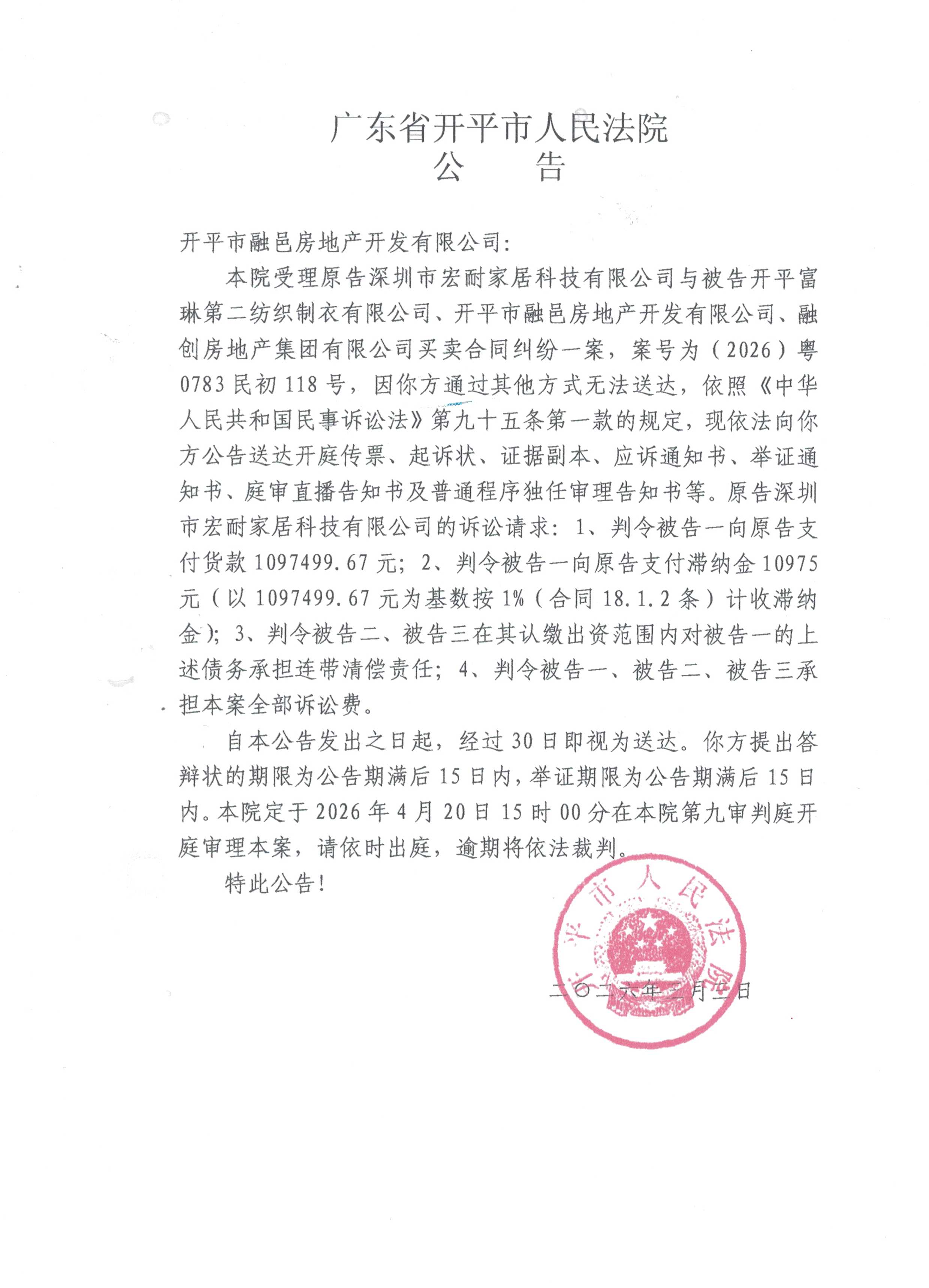 当前位置: 首页 > 法院公告 > 送达公告