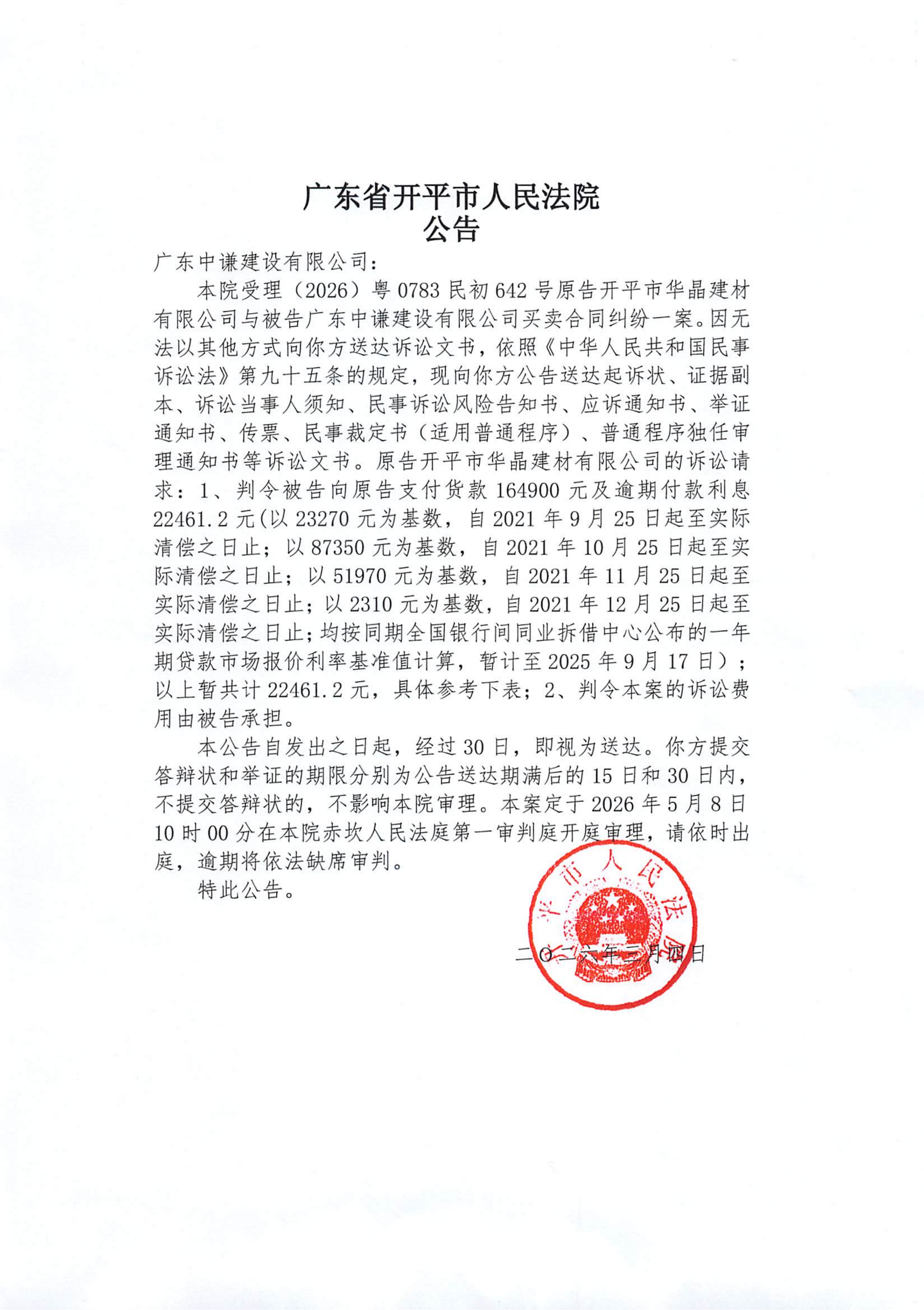 附件:(2026)粤0783民初642号 广东中谦建设有限公司 开庭公告.pdf