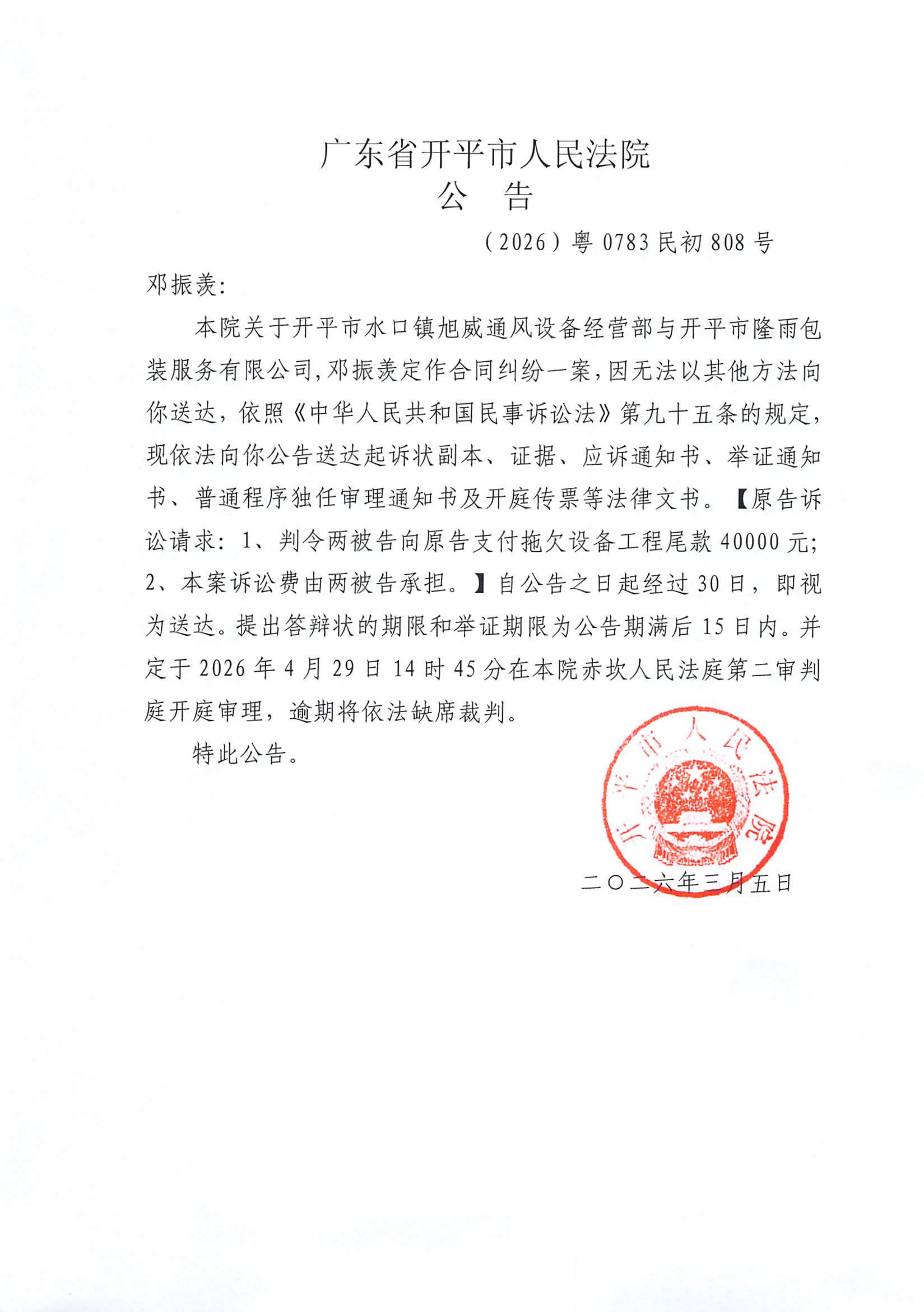 附件:(2026)粤0783民初808号 邓振羡 开庭公告.pdf