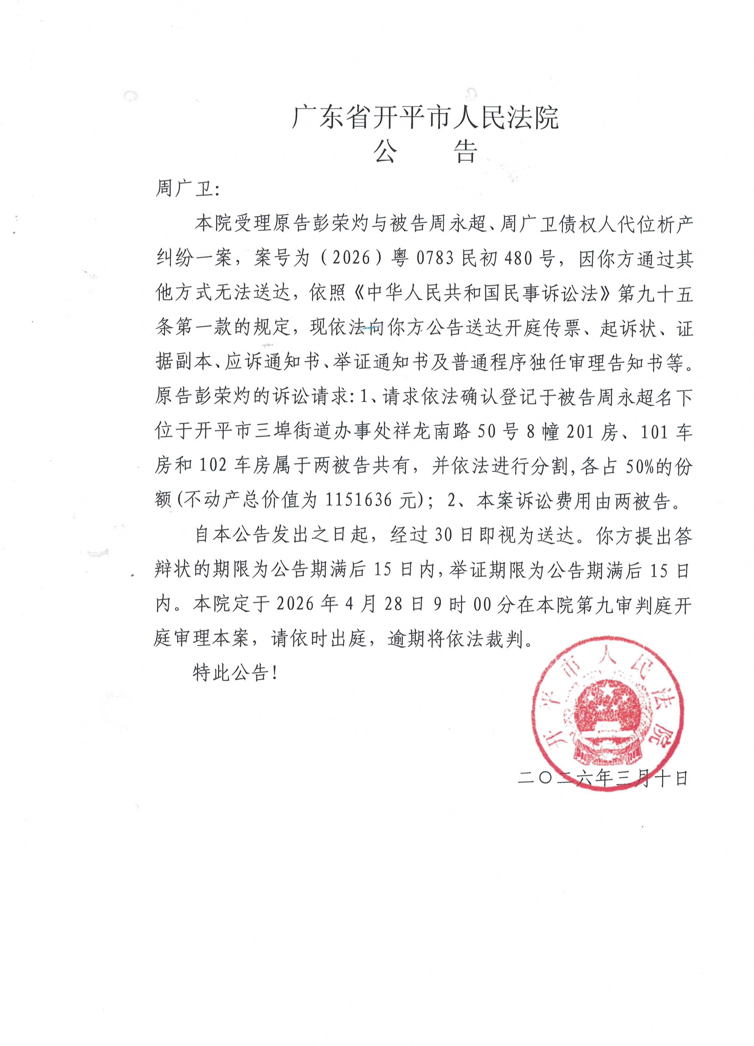 当前位置: 首页 > 法院公告 > 送达公告