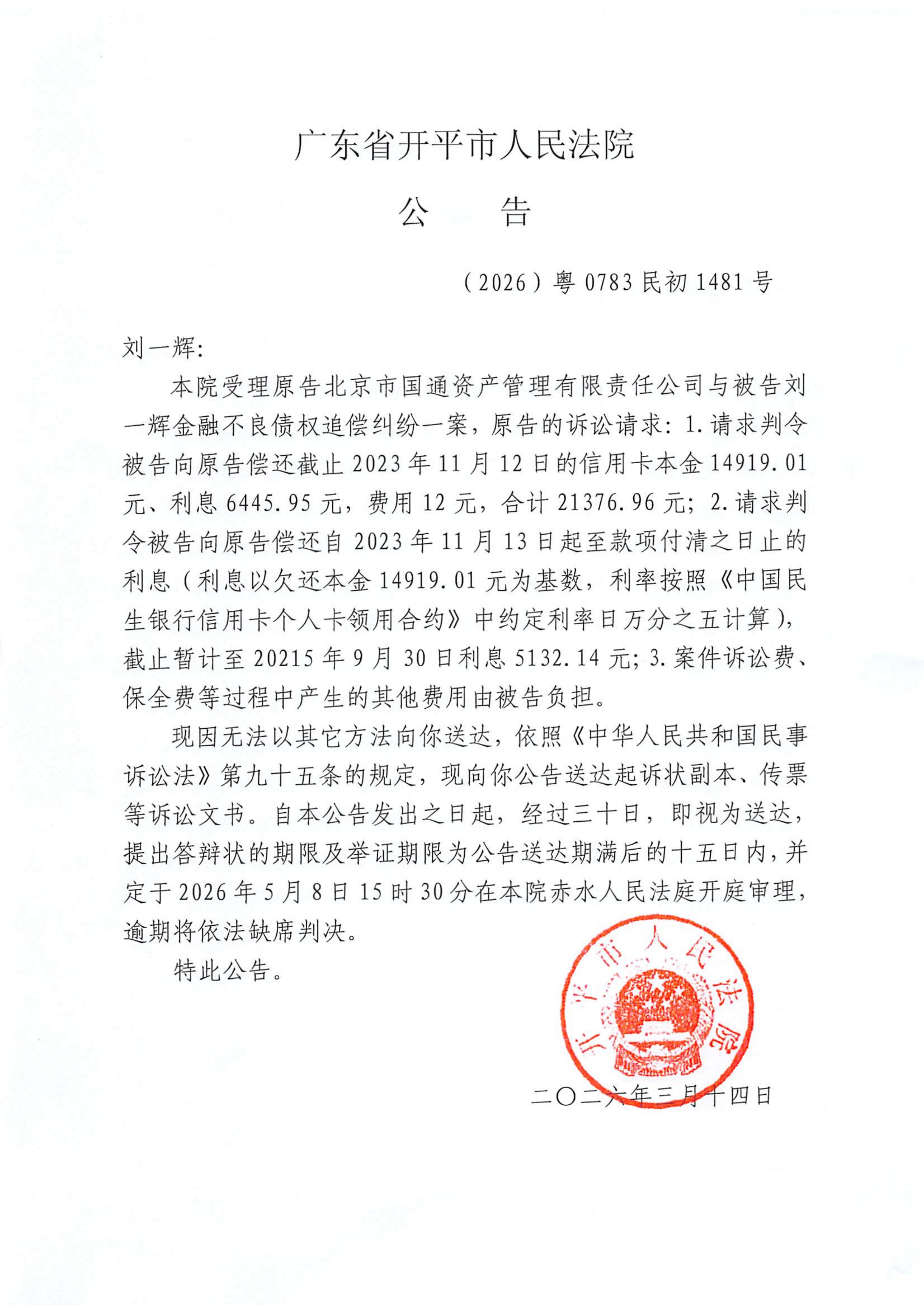附件:(2026)粤0783民初1481号 刘一辉 开庭公告.pdf