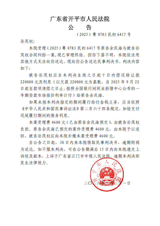 粤ICP备19069791号-1号 开平市人民法院版权所有