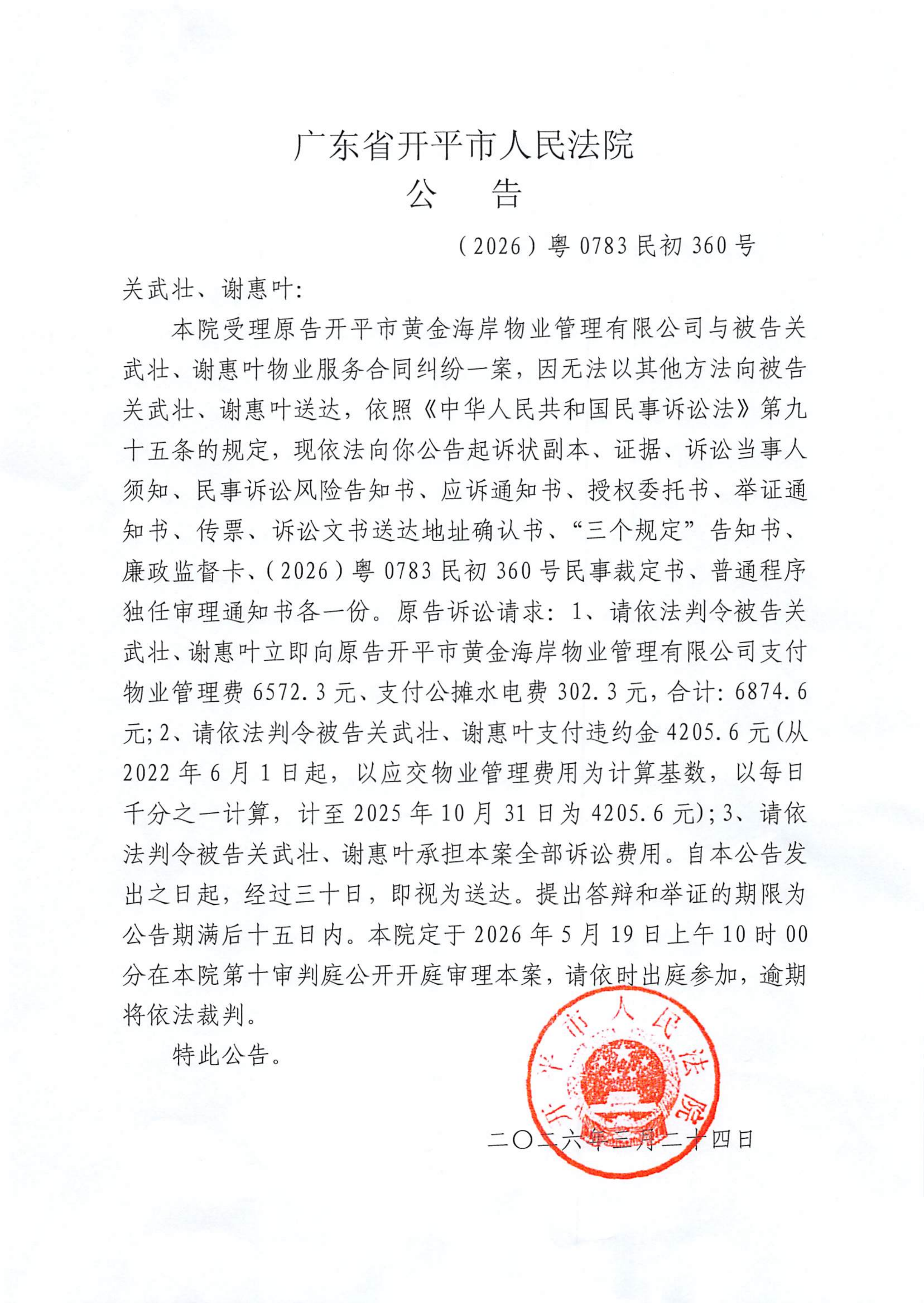 附件:(2026)粤0783民初360号 关武壮、谢惠叶 开庭公告.pdf