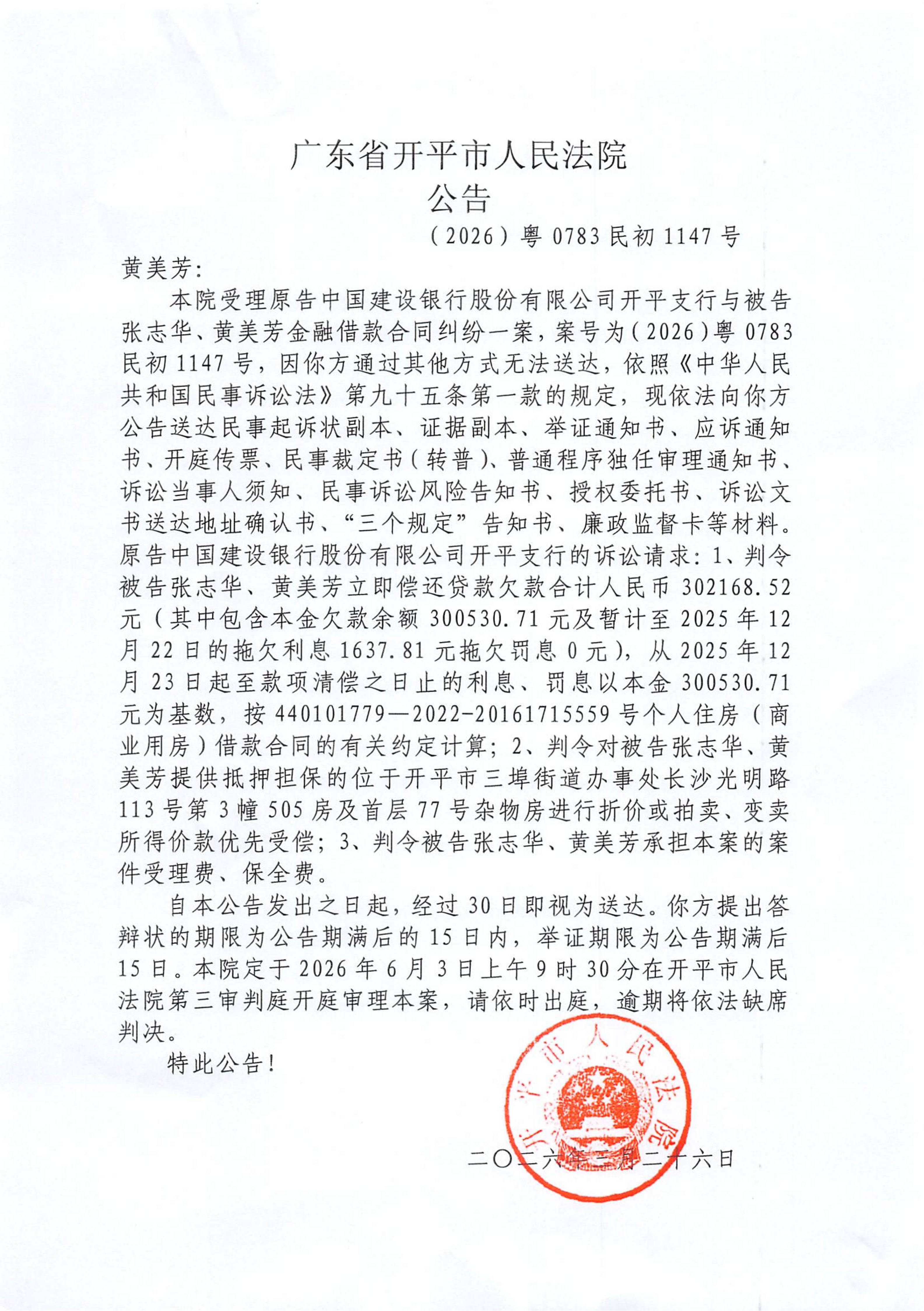 附件:(2026)粤0783民初1147号 黄美芳 开庭公告.pdf