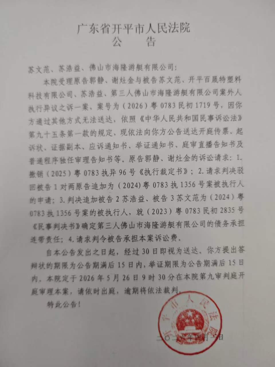 粤ICP备19069791号-1号 开平市人民法院版权所有