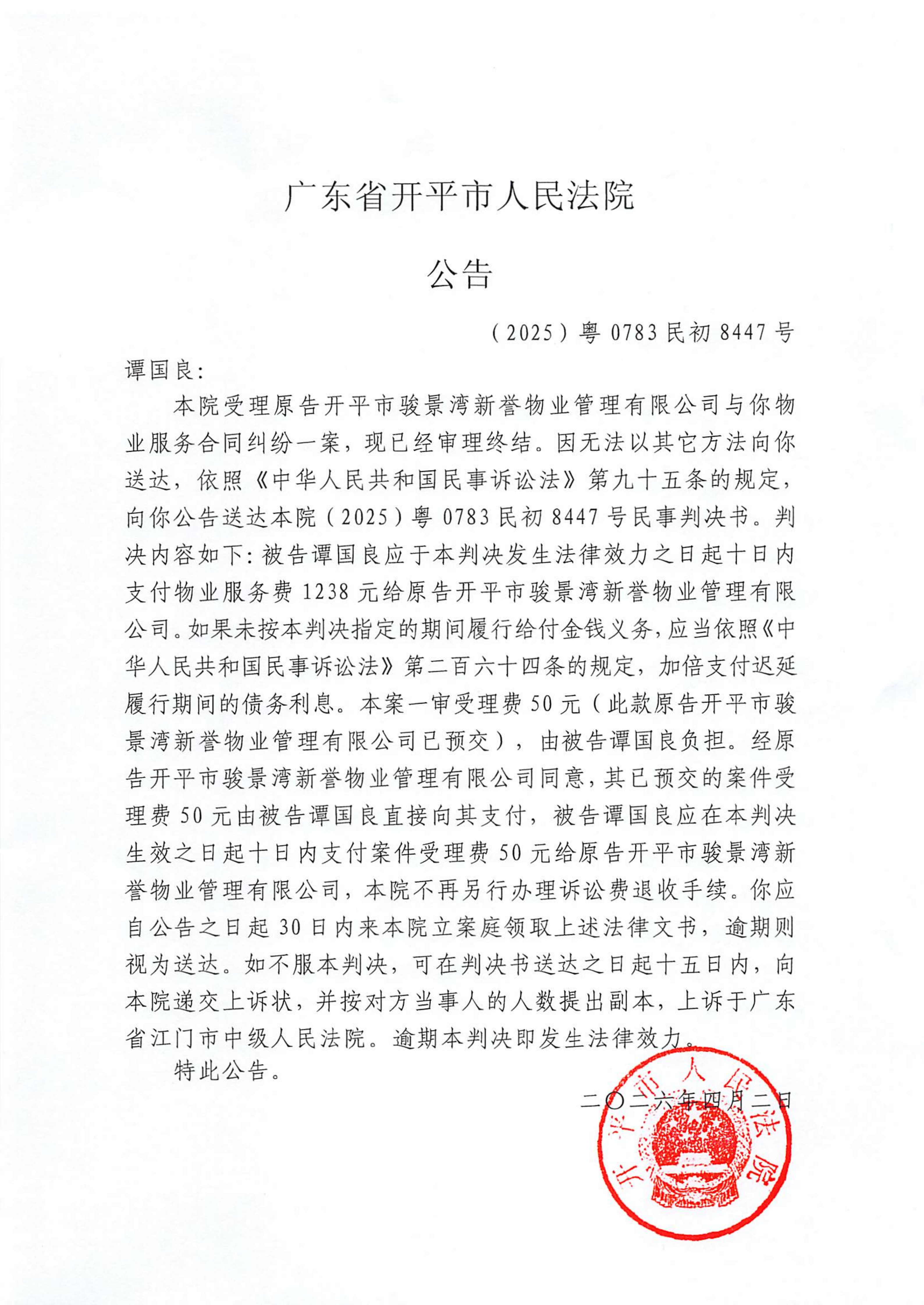 附件:(2025)粤0783民初8447号 谭国良 判决公告.pdf