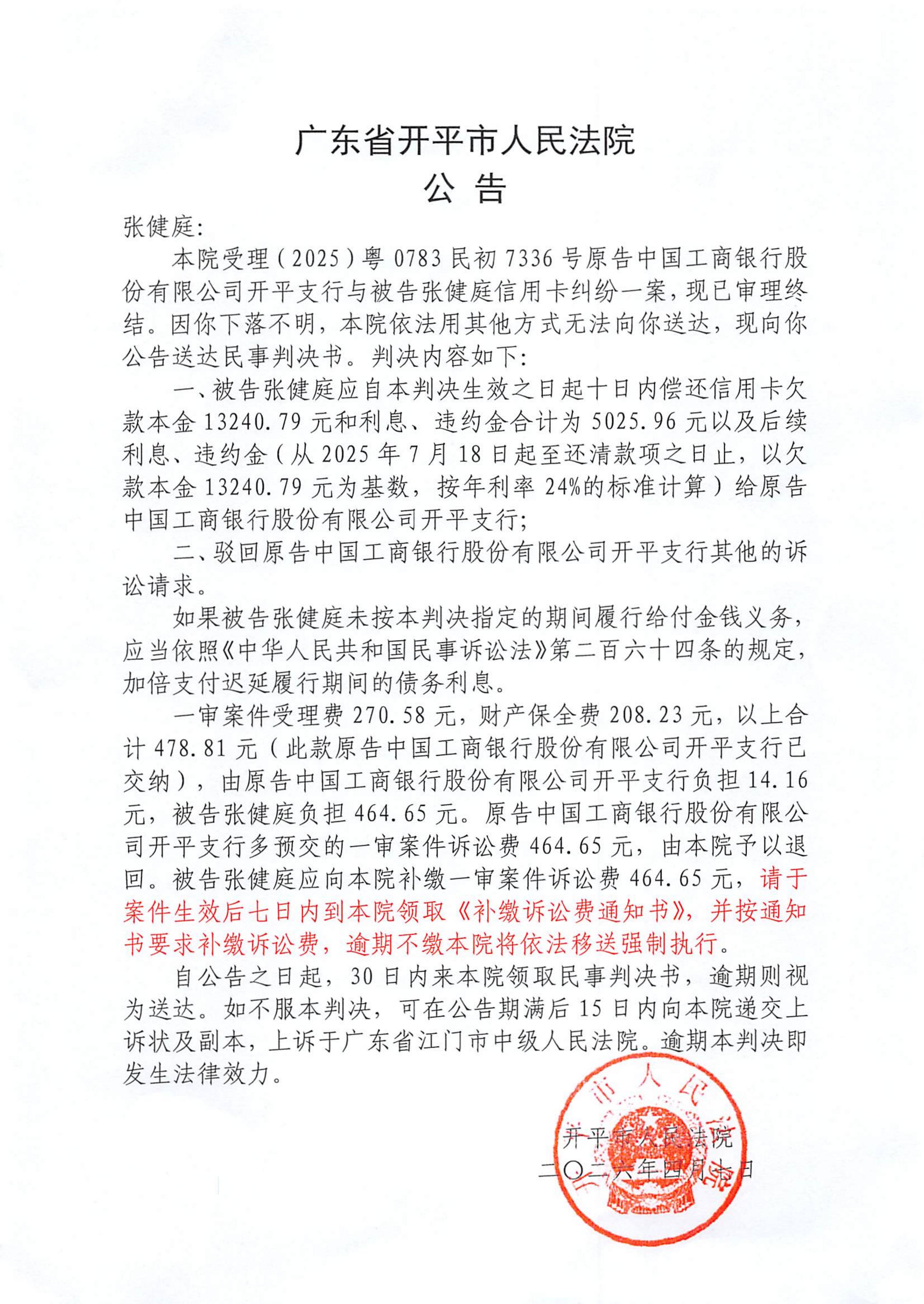 附件:(2025)粤0783民初7336号 张健庭 判决公告.pdf