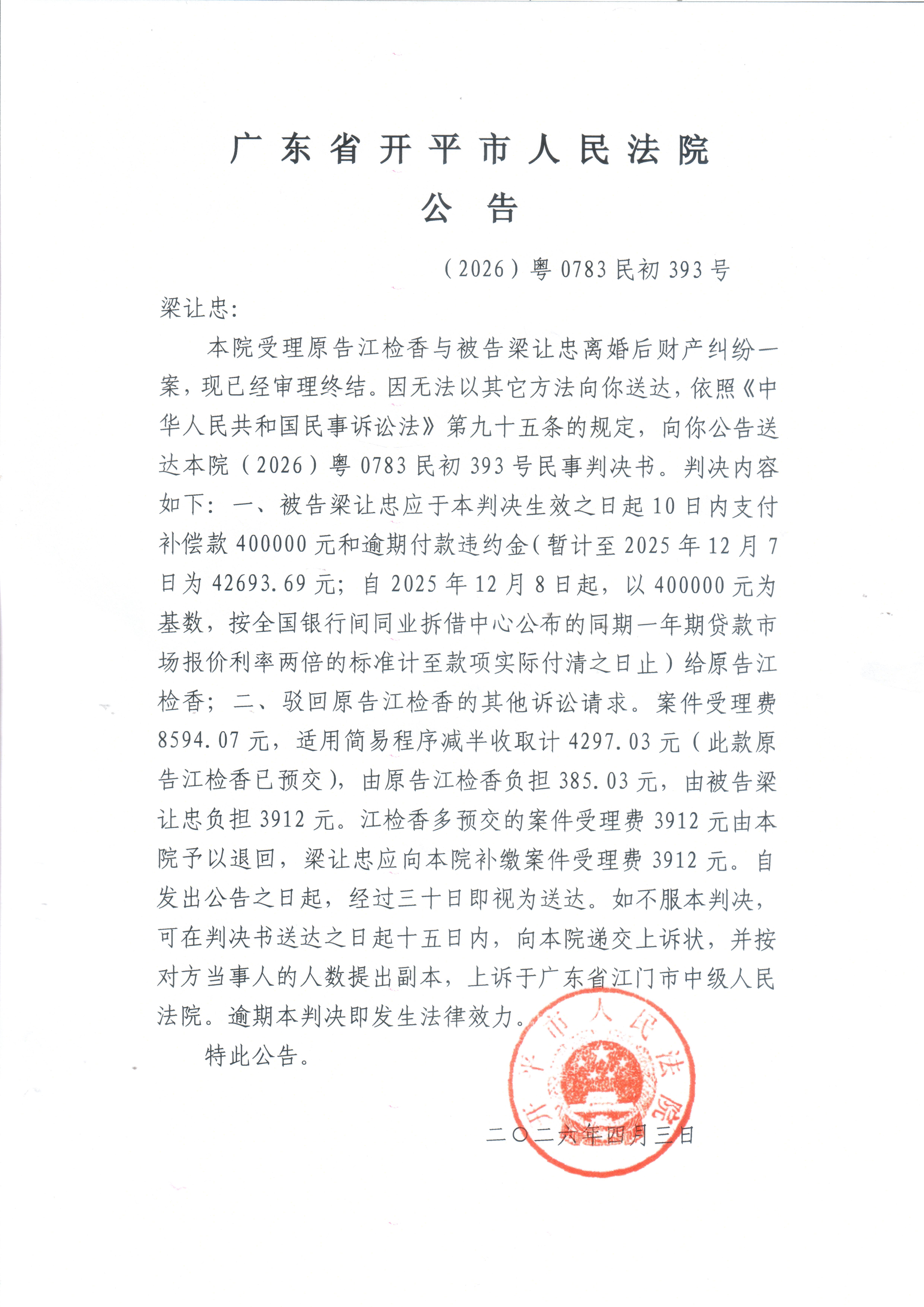 (2026)粤0783民初393号梁让忠判决公告.pdf