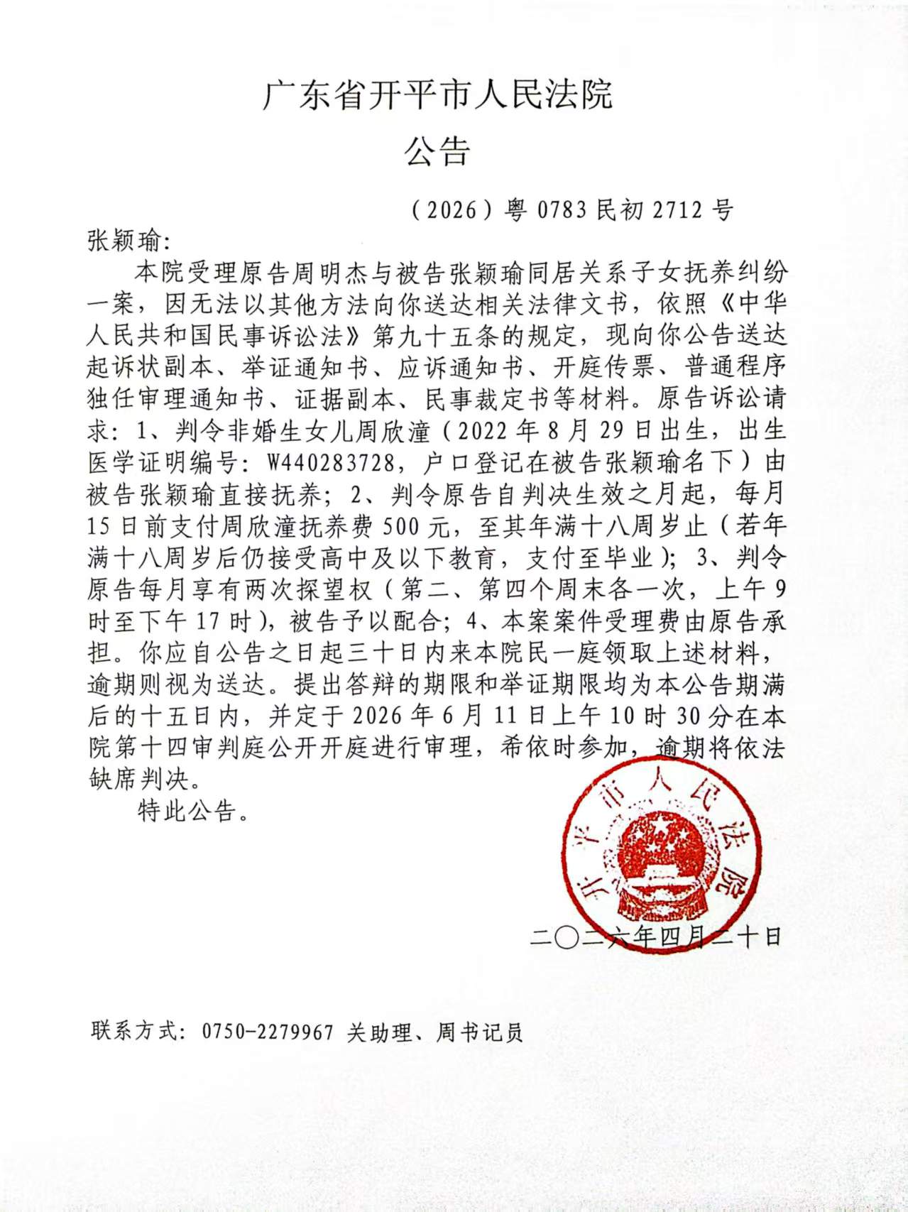 (2026)粤0783民初2712号张颖瑜应诉公告.pdf