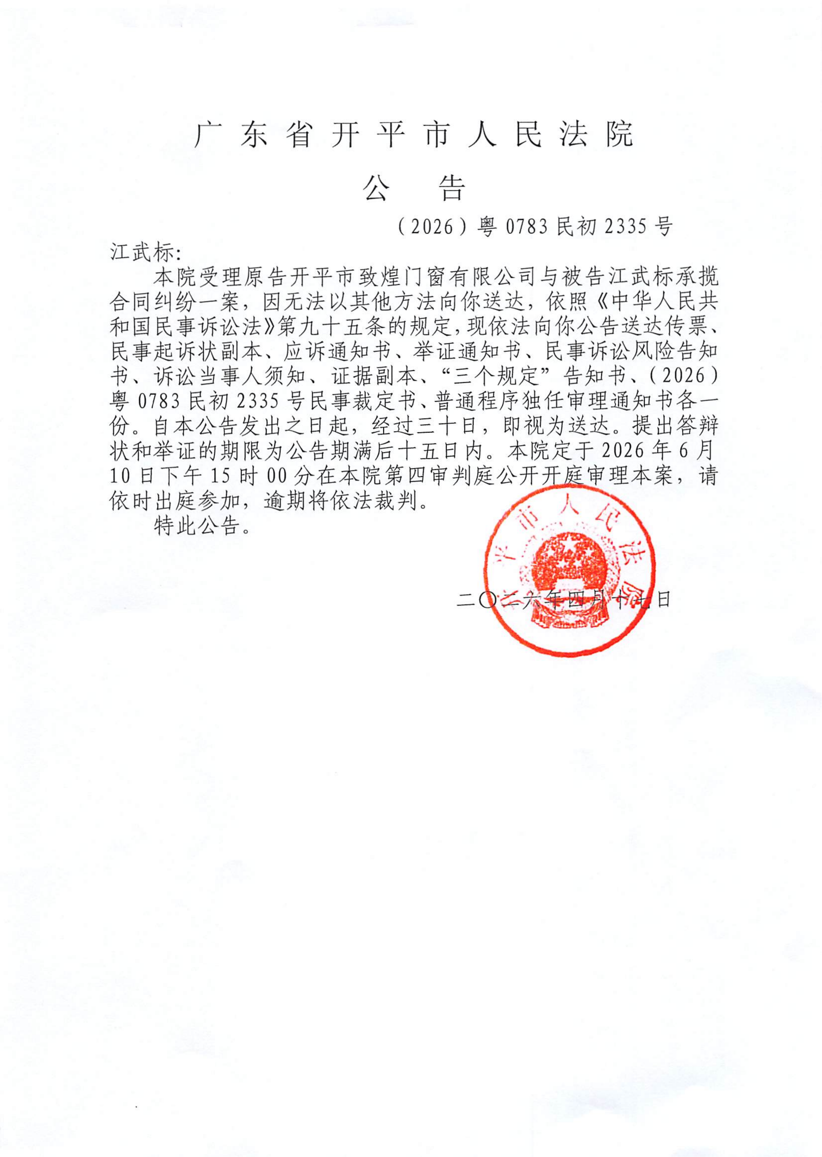 附件:(2026)粤0783民初2335号 江武标 开庭公告.pdf