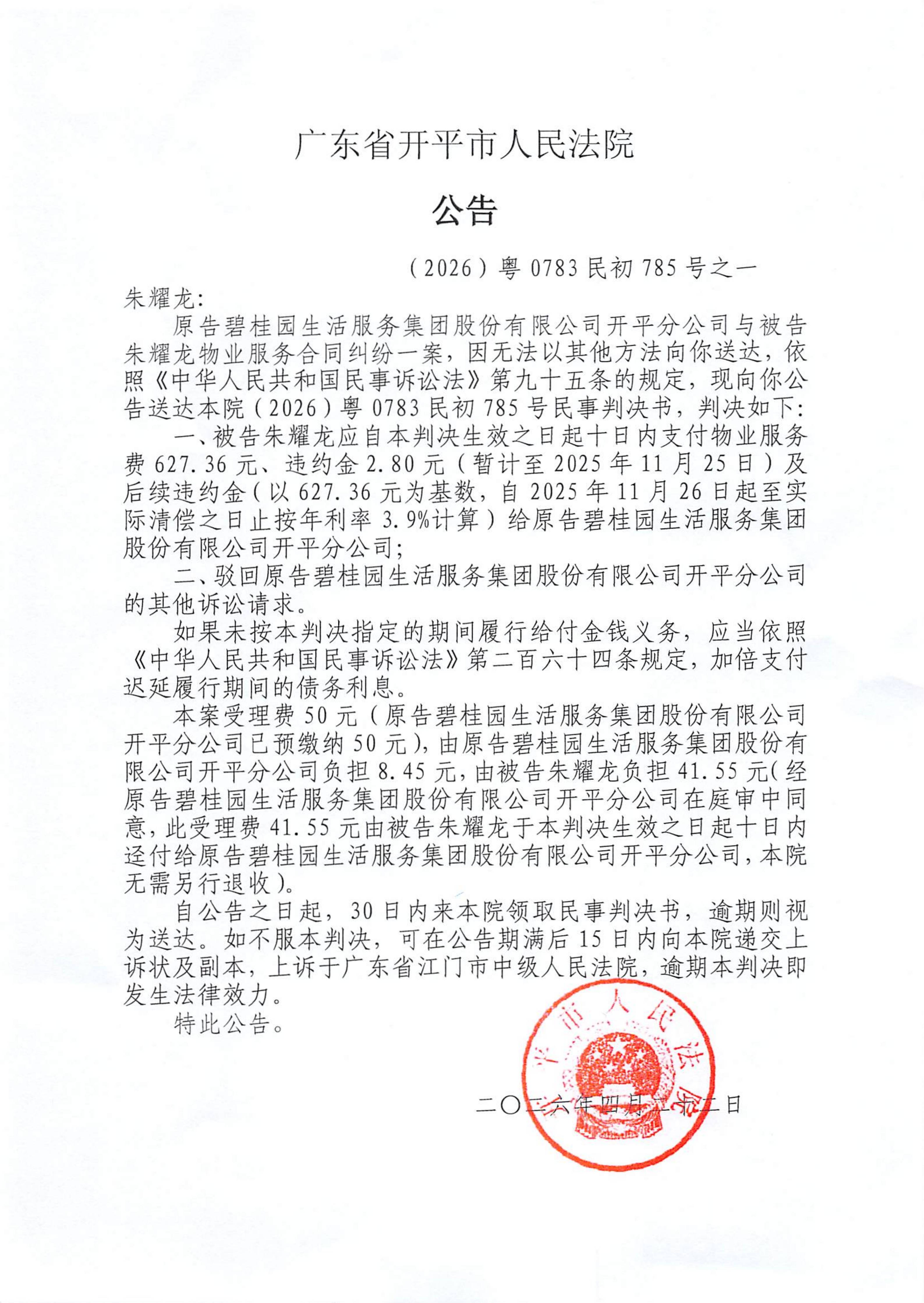 附件:(2026)粤0783民初785号之一 朱耀龙 判决公告.pdf
