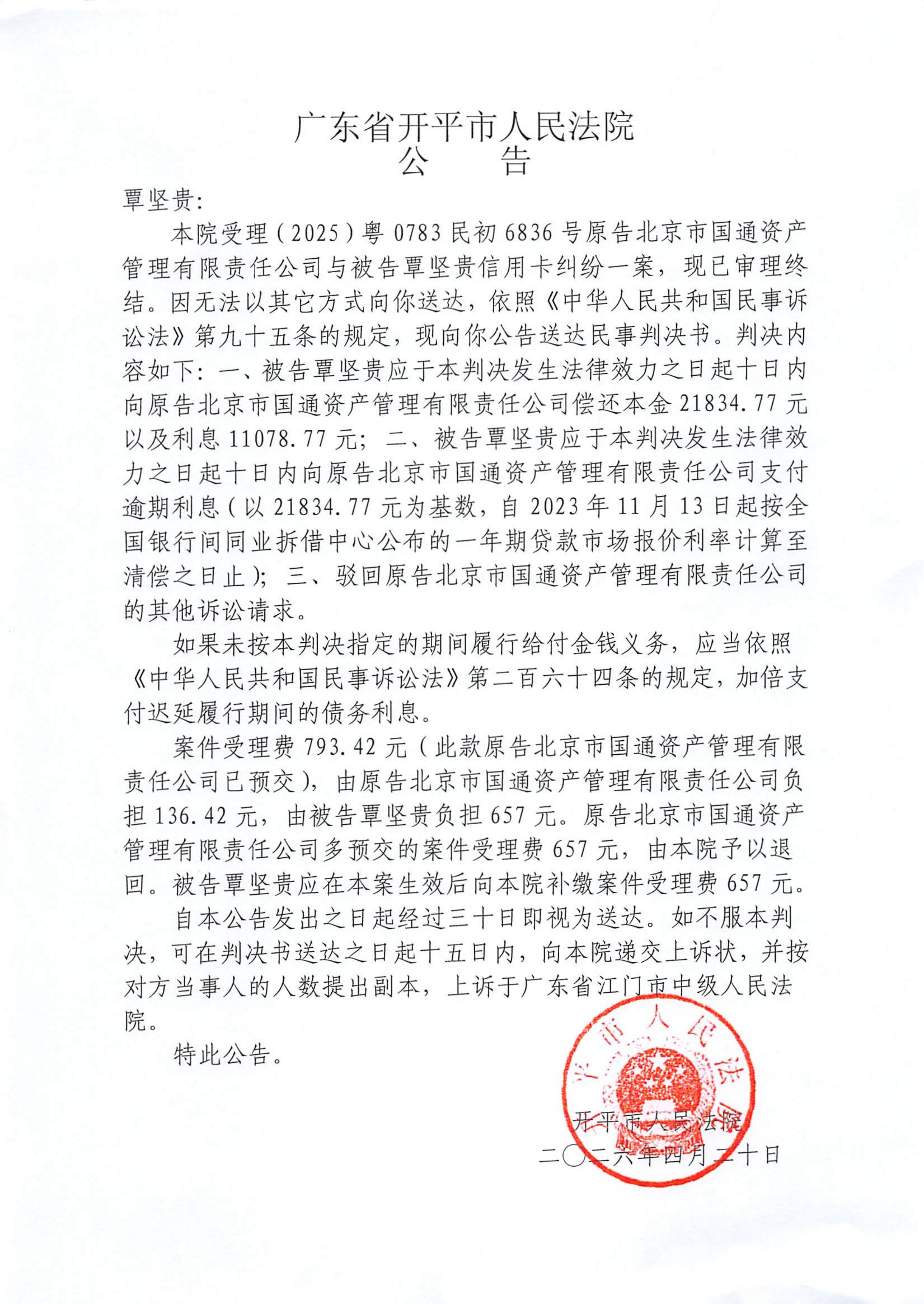附件:(2025)粤0783民初6836号 覃坚贵 判决公告.pdf