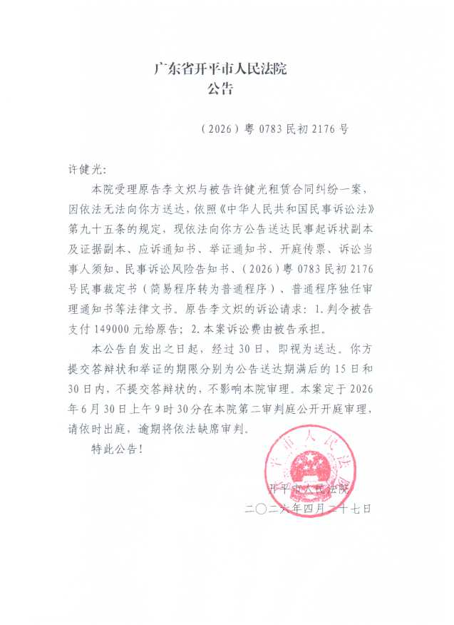 (2026)粤0783民初2176号 许健光 开庭公告.pdf