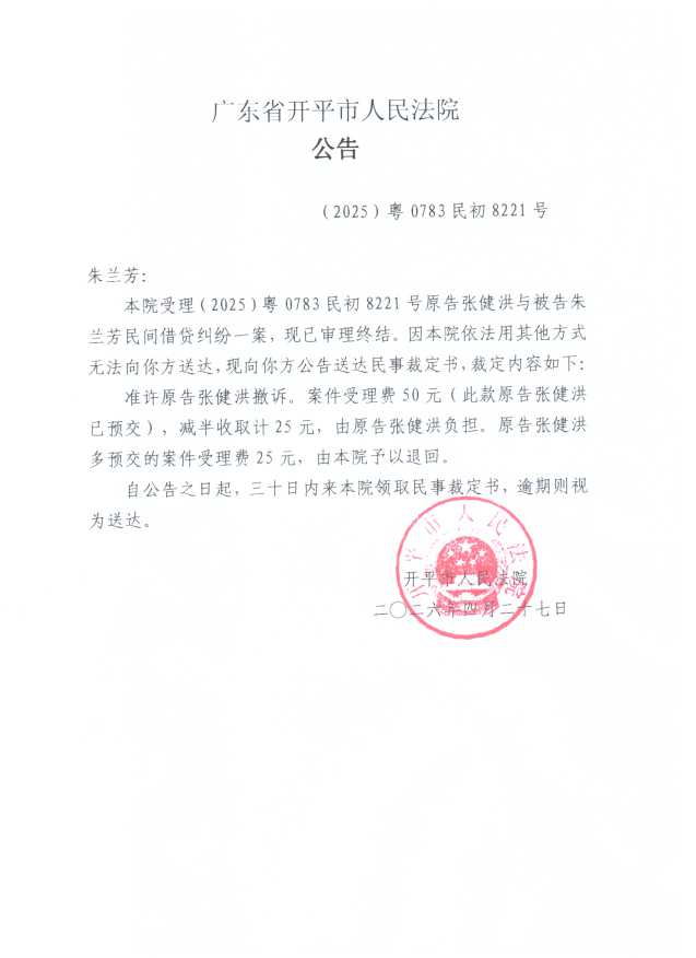 (2025)粤0783民初8221号 朱兰芳 裁定公告.pdf